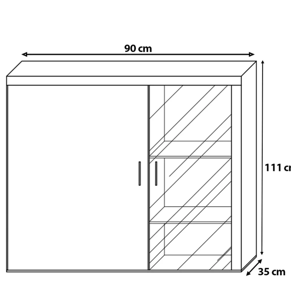 Szafka ta posiada dwie półki za szklaną witryną, które idealnie nadają się do eksponowania ulubionych pamiątek, zdjęć, książek czy dekoracji. Przezroczyste drzwi witryny pozwolą na podziwianie tych przedmiotów, jednocześnie chroniąc je przed kurzem i innymi zanieczyszczeniami.
