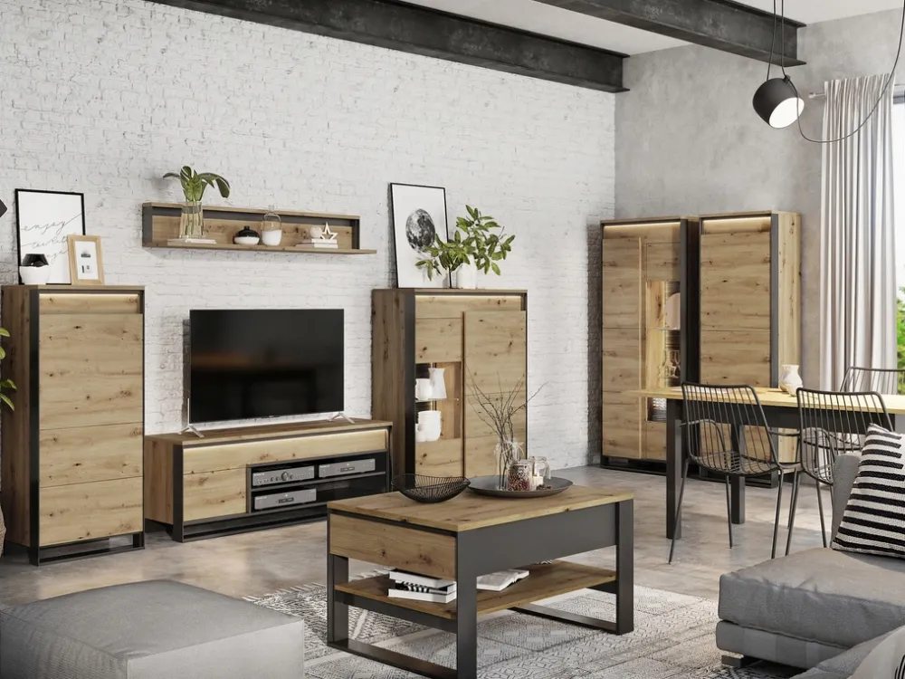 Szafa QUANT jest propozycją pozwalającą wyposażyć twój salon marzeń w ponadczasowym stylu. Szafa została wykonana w loftowej stylistyce z nowoczesnymi akcentami, które doskonale kontrastują z całokształtem bryły, tworząc spójną całość.