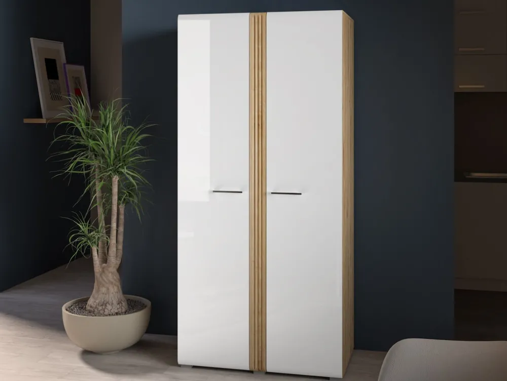 Wybierając naszą szafę, inwestujesz w produkt najwyższej jakości, który posłuży Ci przez wiele lat. Materiały użyte do jej produkcji są starannie wyselekcjonowane, aby zapewnić trwałość i estetyczny wygląd. Biały połysk frontów dodaje wnętrzu lekkości i nowoczesności, idealnie wpisując się w trendy wnętrzarskie.