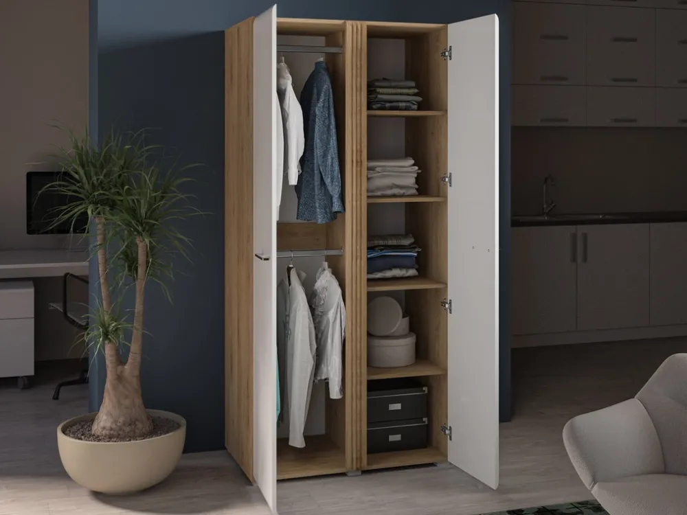 Podsumowując, nasza szafa to połączenie stylu, funkcjonalności i najwyższej jakości wykonania. Doskonała dla każdego, kto ceni elegancję i praktyczne rozwiązania w swoim domu. Dzięki przemyślanemu rozkładowi wnętrza i nowoczesnym detalom stanie się nieodłącznym elementem Twojej codziennej organizacji przestrzeni.