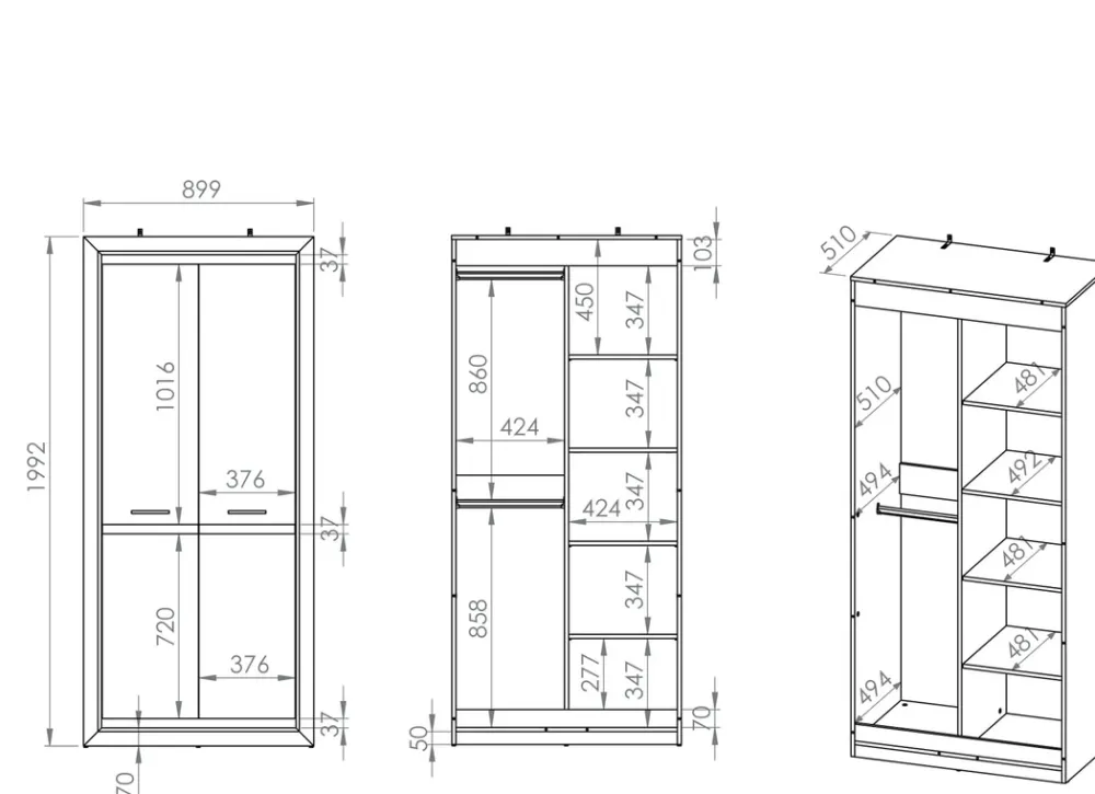 Po lewej stronie szafy znajduje się przestronna sekcja zamykana drzwiami, za którymi ukryto dwa drążki na ubrania. To idealne miejsce na przechowywanie ubrań, takich jak płaszcze, marynarki czy sukienki. Dwa drążki umożliwiają przechowywanie odzieży na różnych wysokościach, co zwiększa pojemność szafy i ułatwia organizację garderoby.