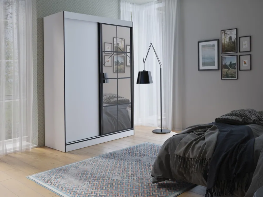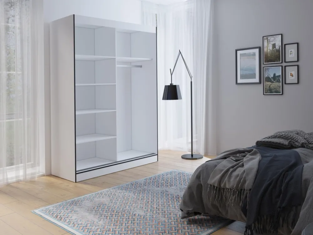 Biel to kolor czystości i świeżości, dlatego szafa przesuwna OLAS w tym odcieniu wprowadzi do Twojego domu uczucie przestronności i jasności. Szerokość 150 cm sprawia, że szafa jest idealnym wyborem zarówno do sypialni, jak i przedpokoju, zapewniając przy tym mnóstwo miejsca na przechowywanie.