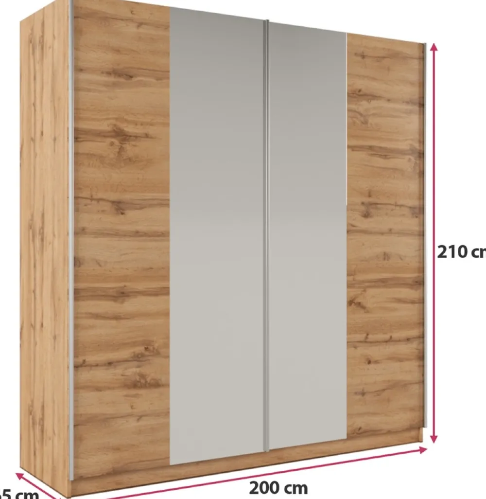 - Szafa przesuwna 200 cm PARDO posiada liczne półki oraz aż cztery drążki na wieszaki z ubraniami. Lustro umieszczone w centralnej części optycznie rozjaśnia oraz powiększa pomieszczenie. Szafa wykonana w nowoczesnej stylistyce.