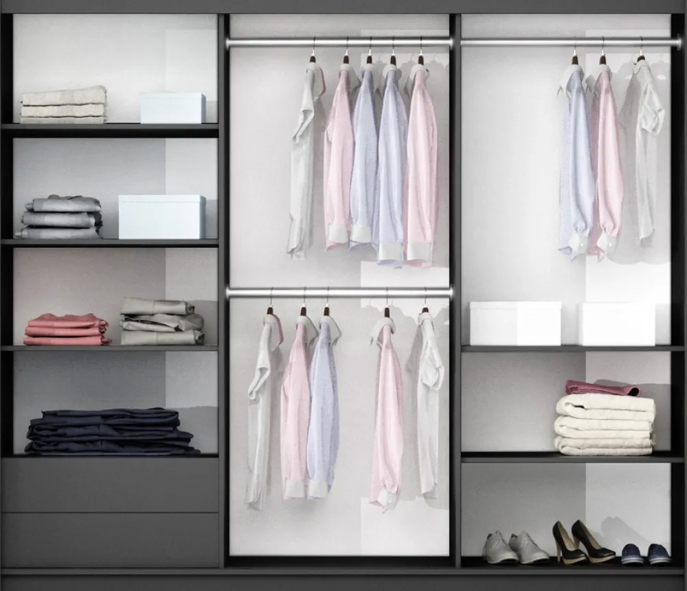 - Drzwi szafy zostały osadzone na łożyskowanym, aluminiowym systemie przesuwnym.