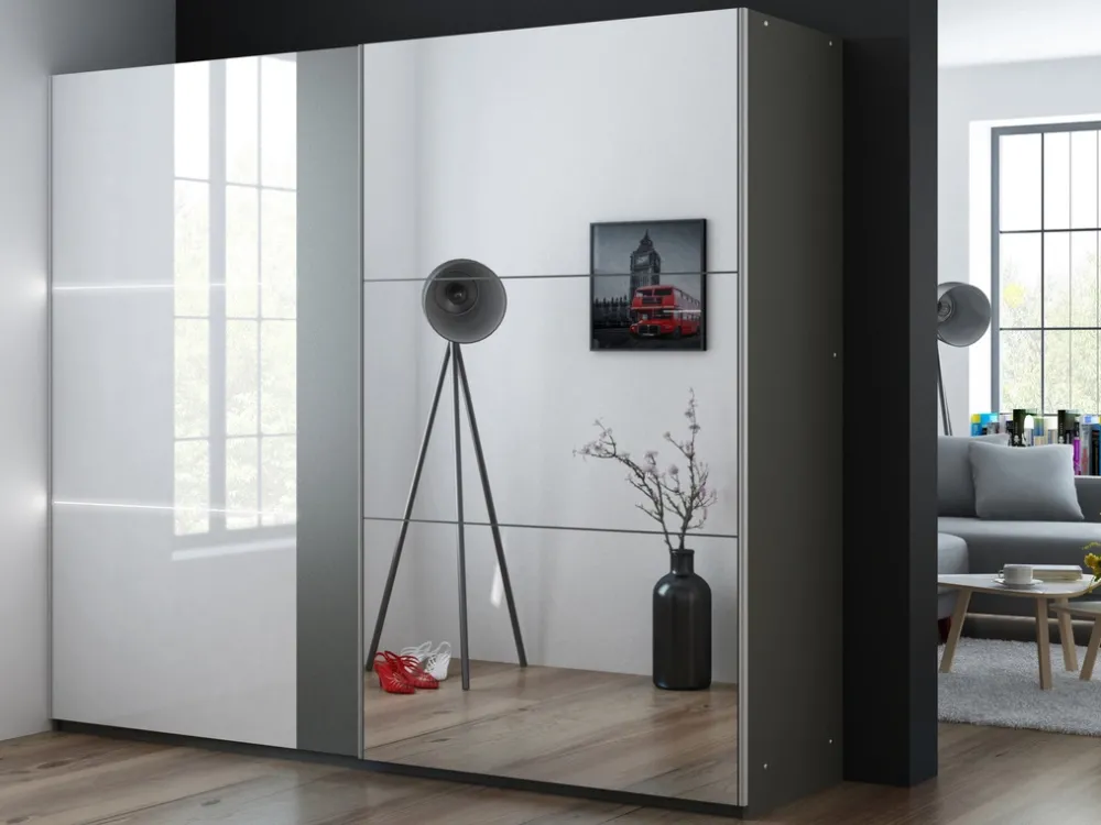 Szafa przesuwna o szerokości 250 cm TOSSA to wyjątkowe połączenie nowoczesnego designu i maksymalnej funkcjonalności, które doskonale sprawdzi się w każdym wnętrzu. Jej imponująca konstrukcja i przemyślany układ wnętrza zapewniają wygodne przechowywanie i organizację garderoby, jednocześnie dodając pomieszczeniu elegancji.