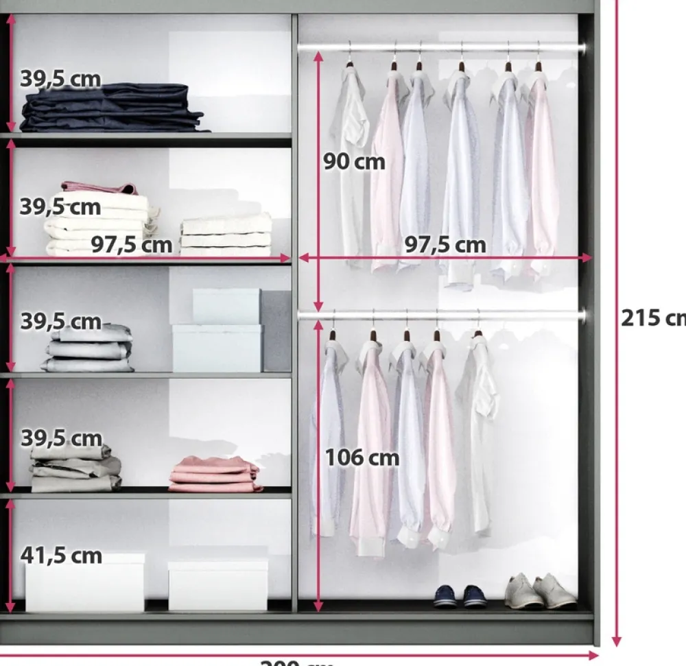 Szafa przesuwna o szerokości 200 cm to połączenie estetyki i praktyczności, które sprawdzi się w każdym domu. Dzięki niej zorganizujesz swoją przestrzeń w sposób funkcjonalny i stylowy, ciesząc się porządkiem i elegancją na co dzień.