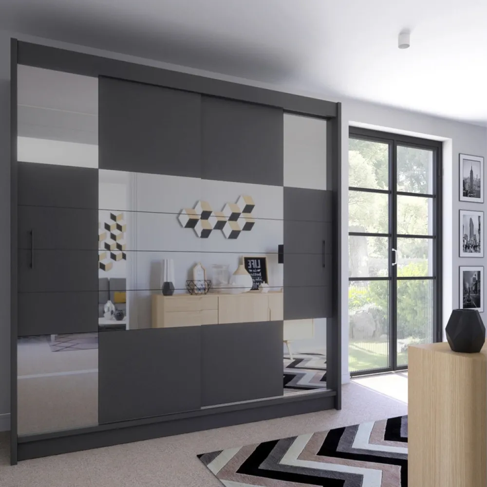 Szafa przesuwna z lustrem o szerokości 203 cm to idealne rozwiązanie dla osób ceniących styl, funkcjonalność i wysoką jakość. Jej nowoczesny design oraz przemyślany układ wnętrza sprawią, że stanie się nie tylko praktycznym, ale również dekoracyjnym elementem Twojego wnętrza.
