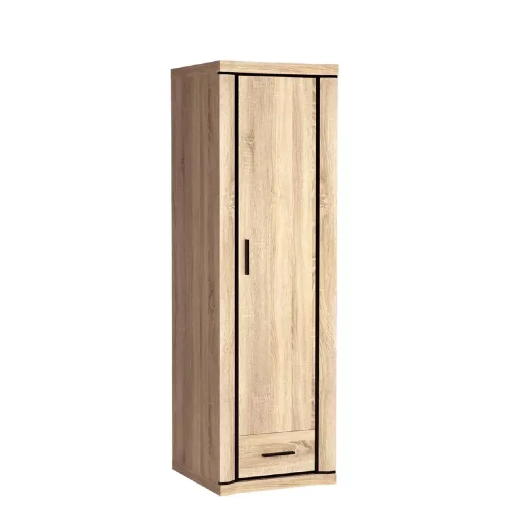 Szafa DENEA to nowocześnie wykonana propozycja, która dzięki swojej niebanalnej stylistyce w doskonały sposób odnajduje się we współczesnych aranżacjach salonów. Szafa została wyposażona w szufladę u dołu, nad którą znajduje się drążek na wieszaki wraz z półką. Szafa mimo swoich niewielkich rozmiarów jest bardzo pojemna i z pewnością pomieści część twojej garderoby.