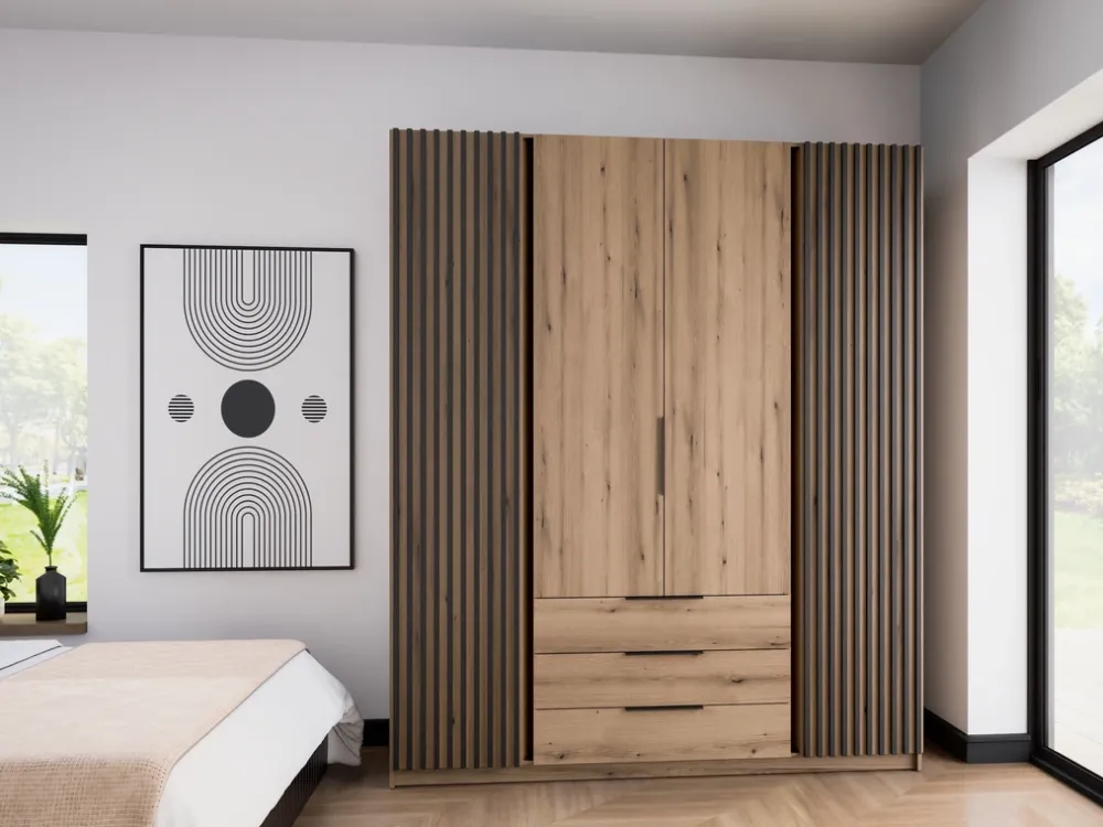 Szafy Młodzieżowe|Szafy Otwierane>Lempert Szafa z lamelami do sypialni 200 cm KARAT dąb evoke