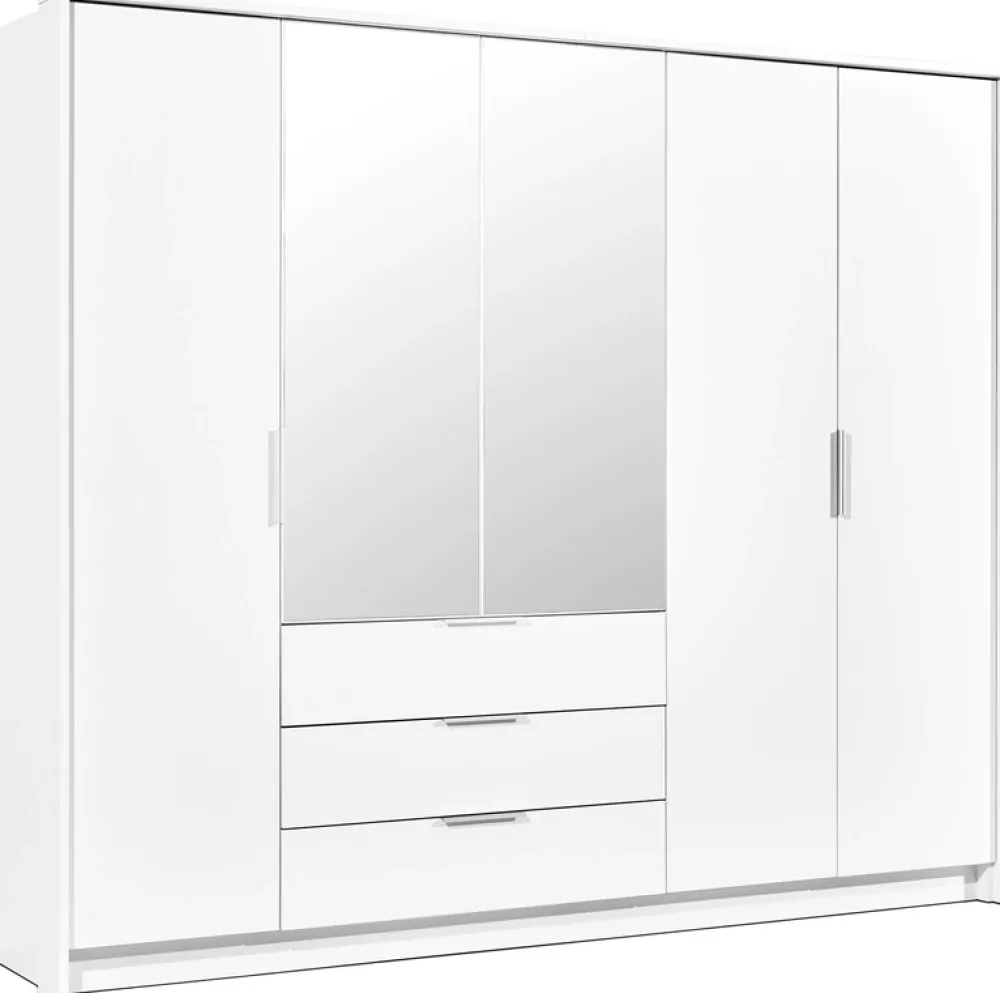 - Szafa 255 cm TETRA posiada aż pięć drzwi, za którymi znajdują się liczne półki oraz trzy drążki na wieszaki. Szafa dzięki swojej wielkości pozwala na przechowanie całej, lub bardzo dużej części garderoby. Pod drzwiami z lustrem znajdują się szuflady