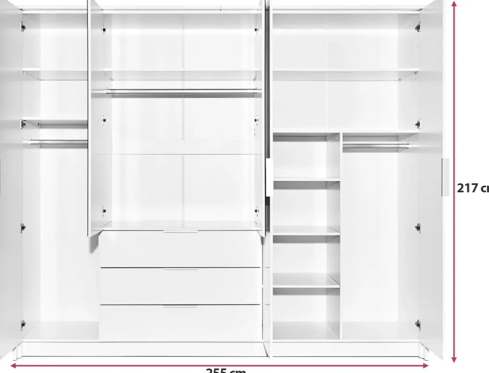 Szafa uchylna o szerokości 255 cm to idealne rozwiązanie dla osób poszukujących pojemnego, praktycznego i stylowego mebla, który spełni wszystkie potrzeby związane z przechowywaniem. Dzięki funkcjonalnym półkom, drążkom i szufladom, zapewnia wygodę użytkowania i doskonałą organizację przestrzeni.