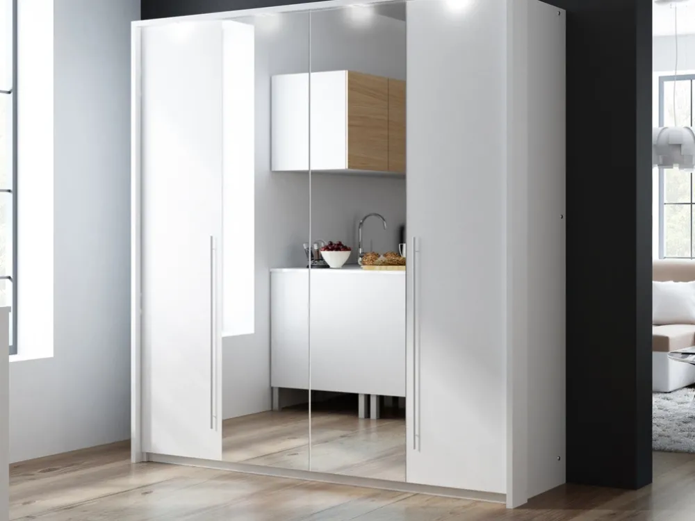 Szafa o szerokości 210 cm to doskonałe połączenie nowoczesnego designu, innowacyjnych rozwiązań i praktycznej przestrzeni do przechowywania. Harmonijkowy system otwierania, przestronne półki i aluminiowe drążki sprawiają, że jest to mebel, który spełni oczekiwania nawet najbardziej wymagających użytkowników.