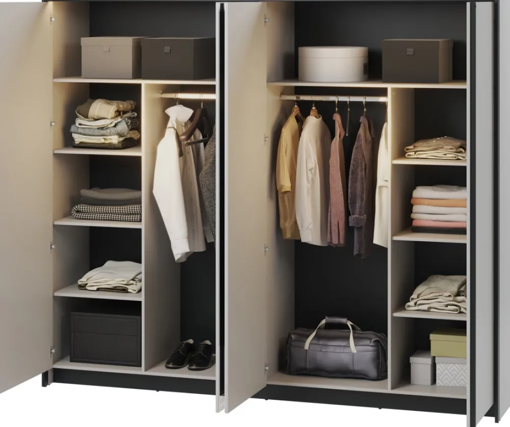 Szafa do sypialni GRIS zapewni nie tylko elegancję, ale także przemyślaną organizację Twojej przestrzeni.