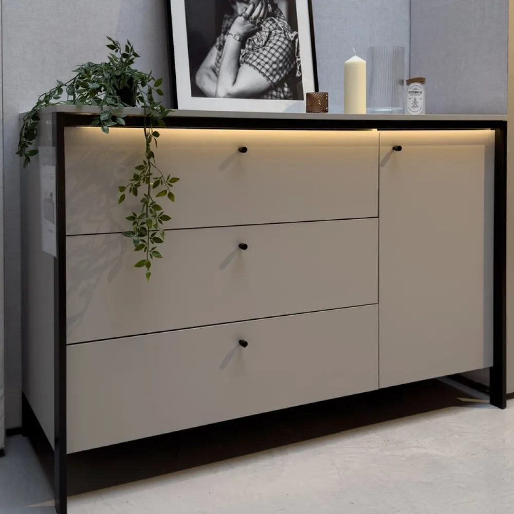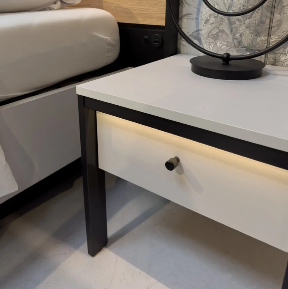 Oświetlenie LED stanowi dodatkowe źródło światła w pomieszczeniu i odpowiada za przytulność i wyjątkowy klimat w Twojej sypialni. Mebel wykonany jest z wytrzymałej płyty laminowanej, odpornej na ścieranie i łatwej w czyszczeniu, co sprawia, że będzie służyć przez wiele lat.