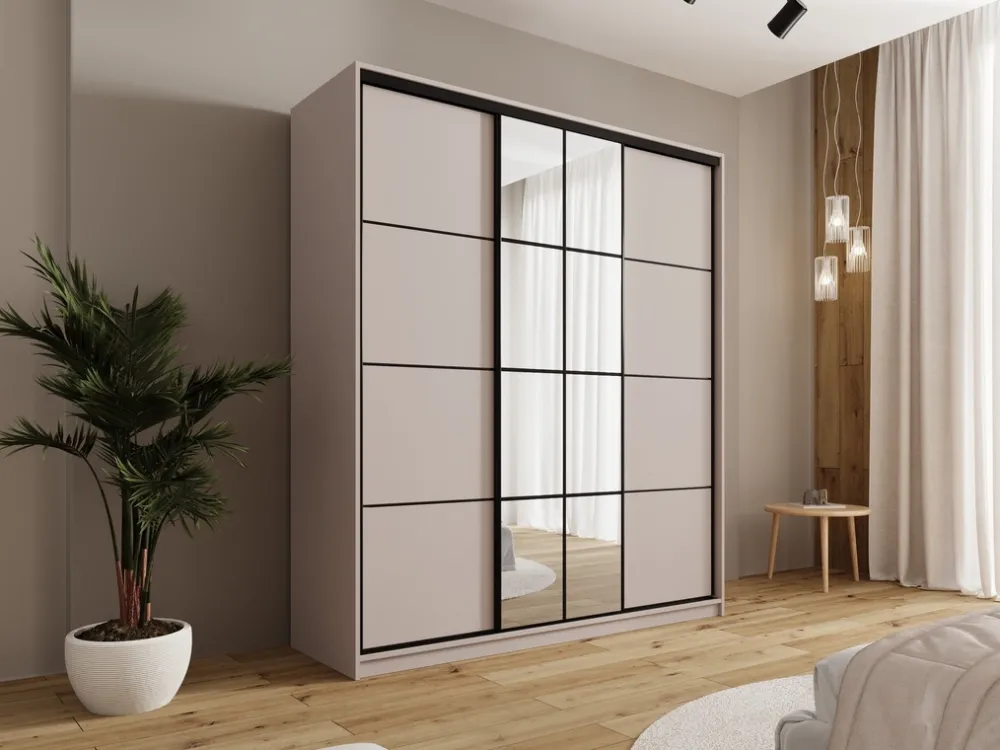 Ta szafa przesuwna z lustrem to nie tylko funkcjonalny element wyposażenia, ale również stylowa dekoracja wnętrza. Duże lustro na froncie nie tylko ułatwia codzienne przygotowania, ale także optycznie powiększa przestrzeń, nadając pomieszczeniu lekkości i nowoczesności. Wybierz szafę 180 cm i ciesz się idealnym połączeniem praktyczności i stylu!