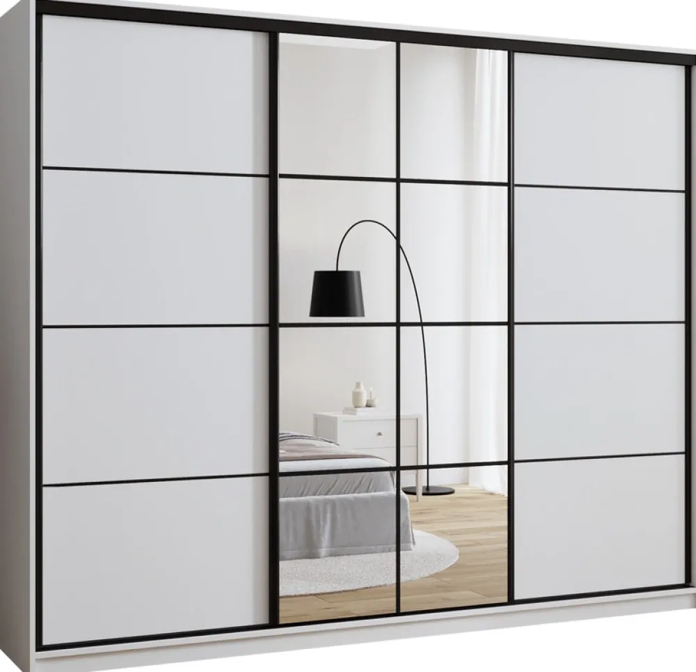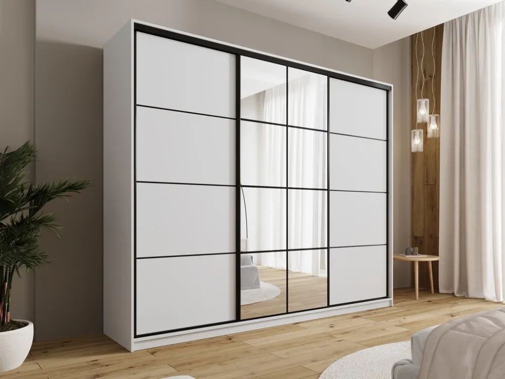 Odkryj naszą szafę z lustrem 250 cm EDGE, która łączy funkcjonalność z nowoczesnym designem. Ta przestronna szafa doskonale wpasuje się w każdą sypialnię, oferując nie tylko stylowy wygląd, ale także praktyczne rozwiązania przechowywania.
