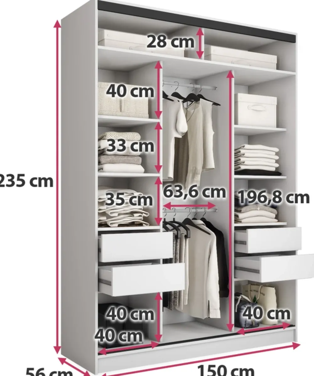 Nasza szafa przesuwna 150 cm to więcej niż tylko mebel – to perfekcyjne rozwiązanie, które pomoże Ci zorganizować przestrzeń i dodać elegancji Twojemu wnętrzu. Wybierz produkt, który łączy w sobie nowoczesny design, wysoką funkcjonalność i trwałość, zapewniając komfort i satysfakcję każdego dnia. Zainwestuj w szafę, która spełni wszystkie Twoje oczekiwania i sprawi, że Twoje wnętrze stanie się bardziej stylowe i uporządkowane.