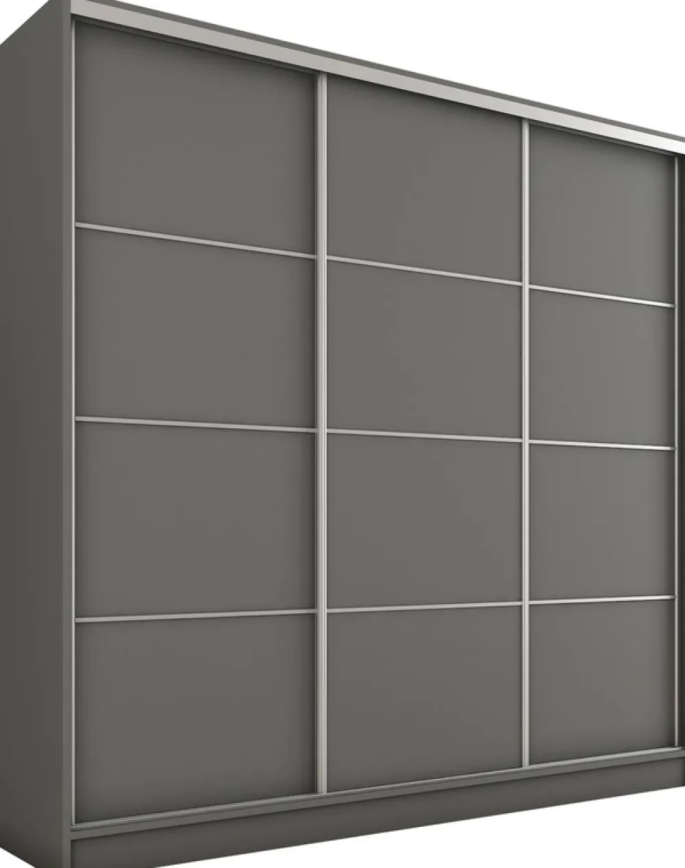 - Szafa przesuwna 180 cm TOP w grafitowym kolorze doskonale wpisuje się w nowoczesne aranżacje pomieszczeń. Szafa posiada trzy drzwi osadzone na stalowej prowadnicy w srebrnym kolorze. Wewnątrz szafy znajdują się półki, drążki i szuflady.