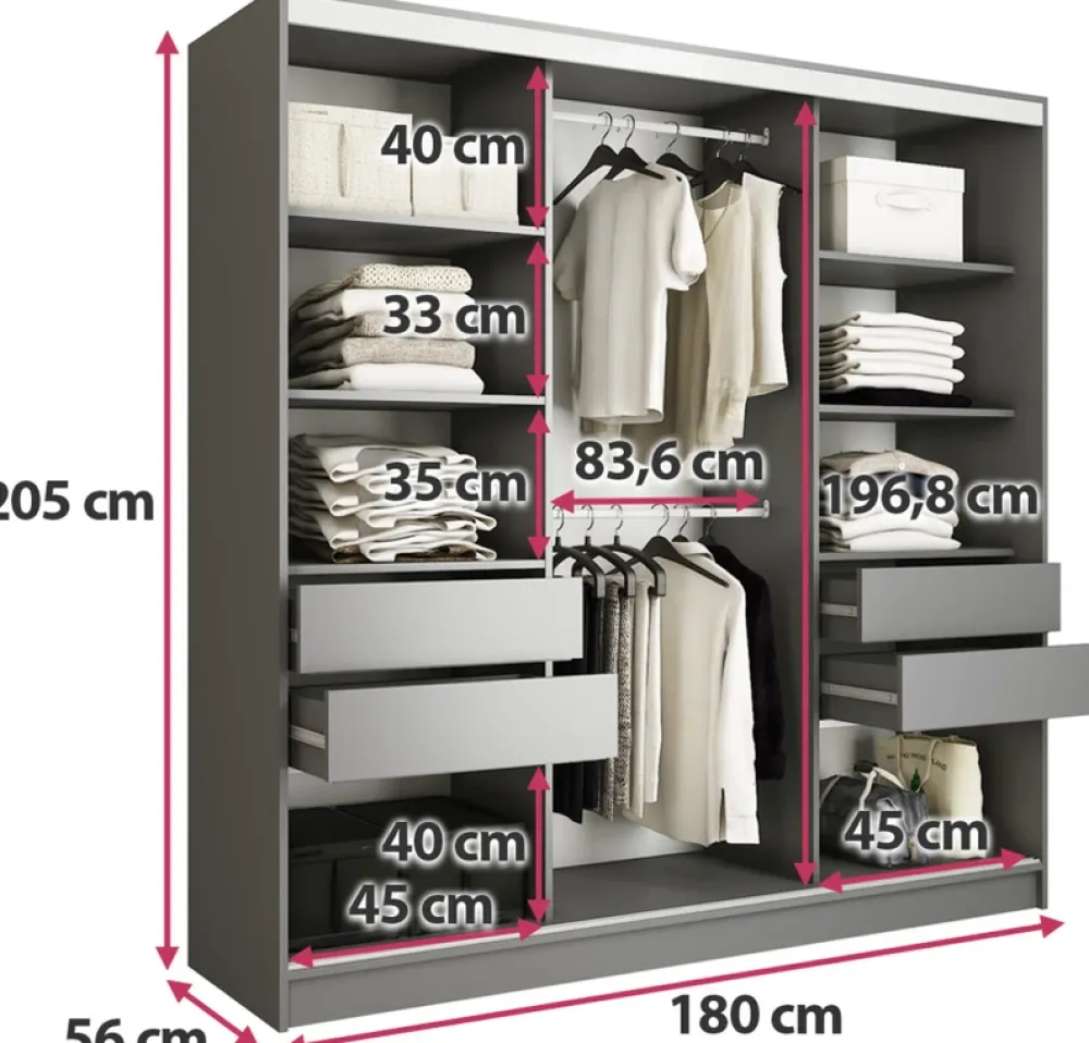 Szafa przesuwna TOP to nie tylko funkcjonalny mebel, ale także element, który doda elegancji każdemu wnętrzu. Jej nowoczesny design sprawia, że doskonale komponuje się zarówno z klasycznymi, jak i nowoczesnymi aranżacjami wnętrz. Szafa TOP to idealne rozwiązanie dla osób, które cenią sobie styl oraz wysoką jakość wykonania.