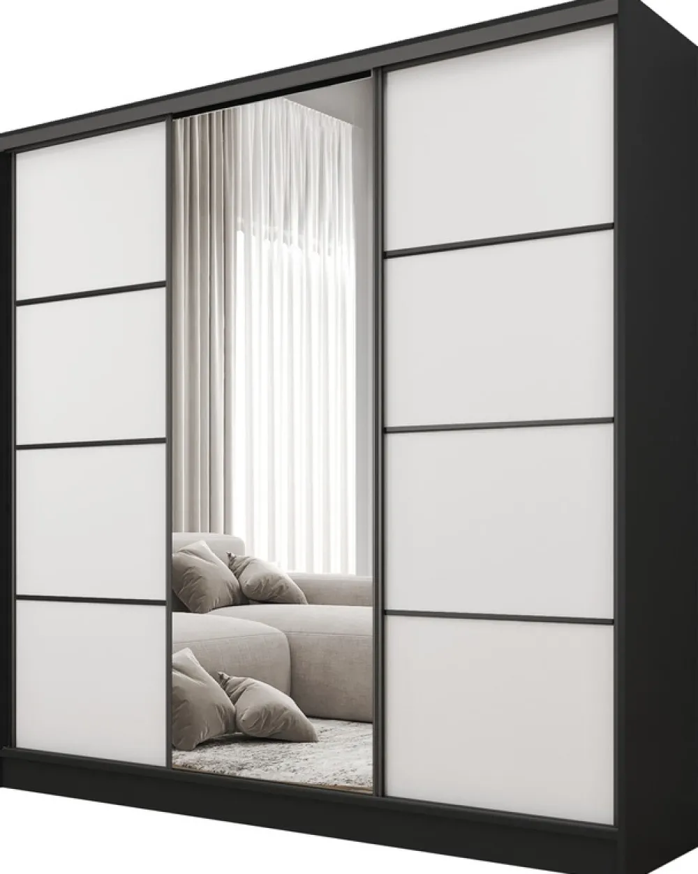 Szafa przesuwna do sypialni BEST to kwintesencja nowoczesnego designu. Posiada 180 cm szerokości, co sprawia, że doskonale komponuje się z przestrzennymi, nowoczesnymi sypialniami czy garderobami. Środkowe drzwi z lustrem nie tylko dodają elegancji, ale również optycznie powiększają przestrzeń, czyniąc każde pomieszczenie jaśniejszym i bardziej przestronnym.