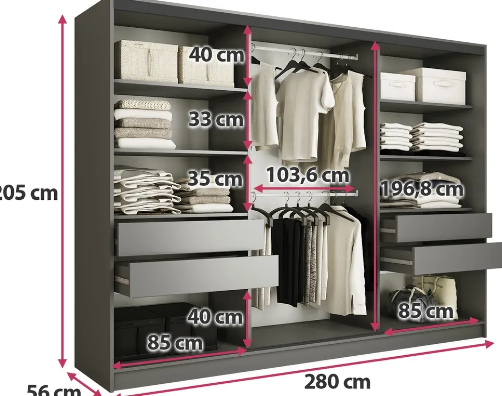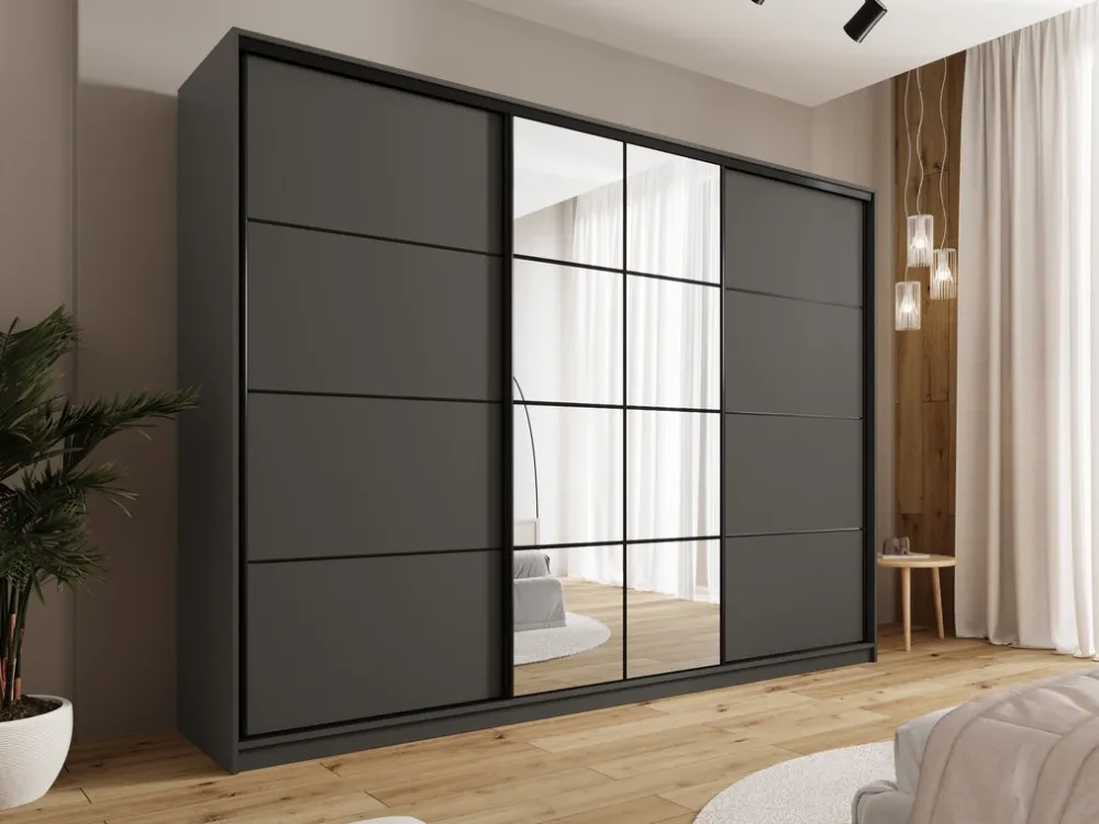 Wybierając szafę z lustrem 280 cm, inwestujesz w funkcjonalność, styl i wygodę. To idealny mebel do każdej przestronnej sypialni lub garderoby, który pozwoli Ci zorganizować przestrzeń i cieszyć się pięknym, nowoczesnym wnętrzem.