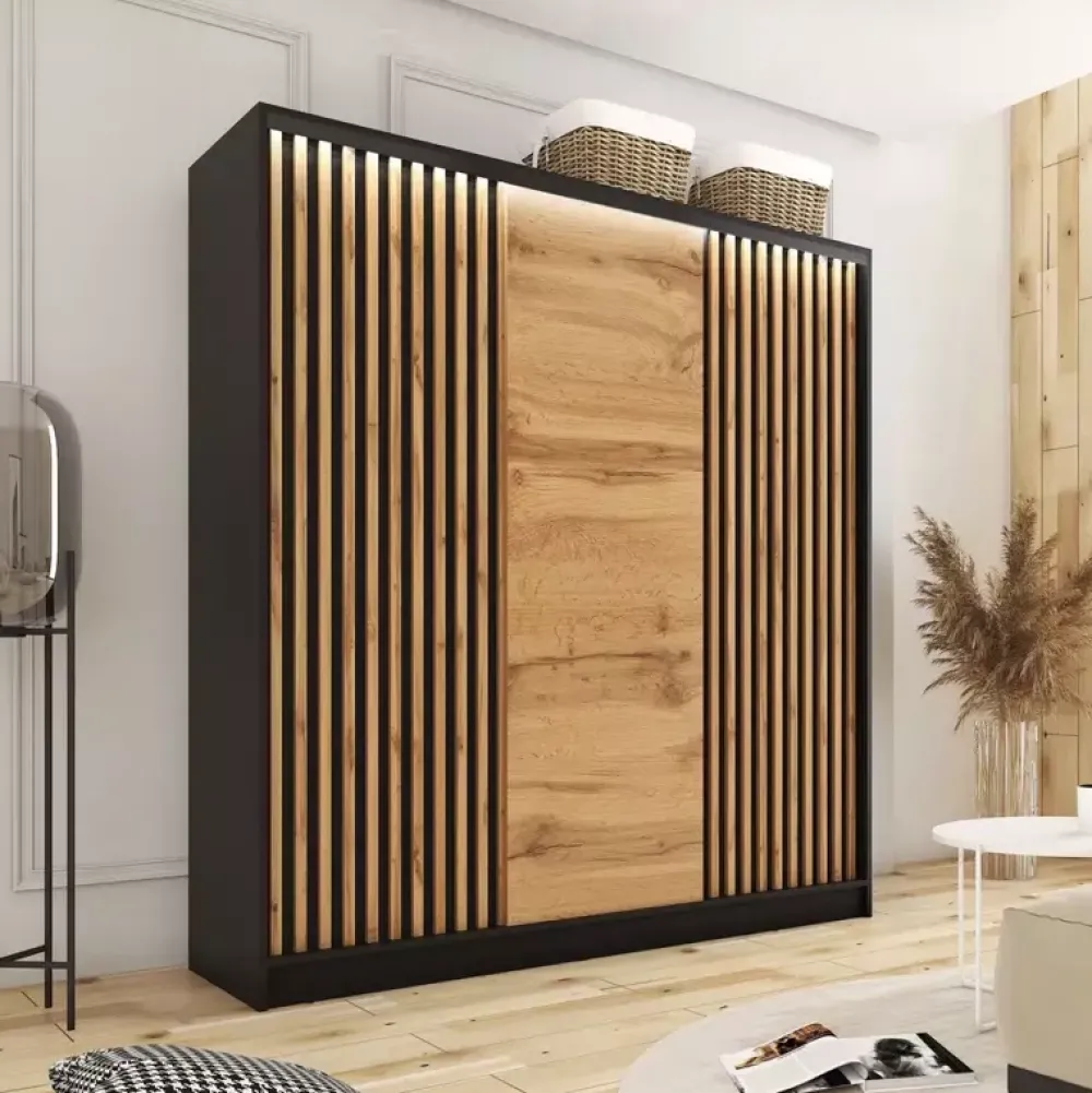 Szafa przesuwna LOFT 150 cm to doskonały wybór dla miłośników nowoczesnego designu i praktycznych rozwiązań. Jej unikalne lamelowe fronty wprowadzają industrialny charakter, który świetnie wpisuje się w styl loftowy, dodając wnętrzu wyrazistości i elegancji. Szerokość 150 cm czyni ją idealnym rozwiązaniem zarówno do przestronnych sypialni, jak i mniejszych pomieszczeń.