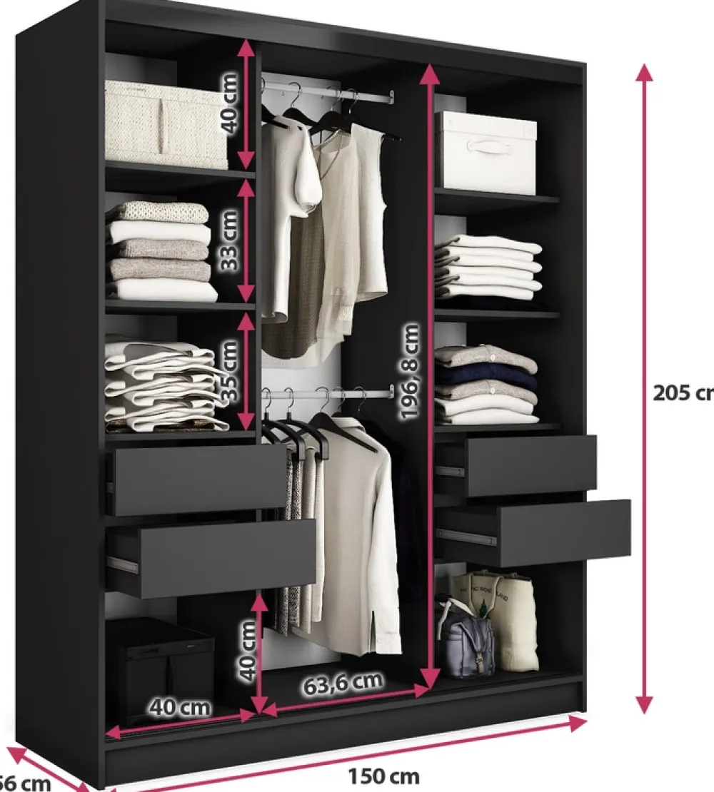 Szafa przesuwna LOFT 150 cm to połączenie estetyki i funkcjonalności. Jej nowoczesny design, przestronność i wygoda użytkowania sprawiają, że spełni oczekiwania nawet najbardziej wymagających klientów. Dzięki niej zorganizujesz swoją przestrzeń w praktyczny sposób, nadając jednocześnie pomieszczeniu stylowy wygląd.