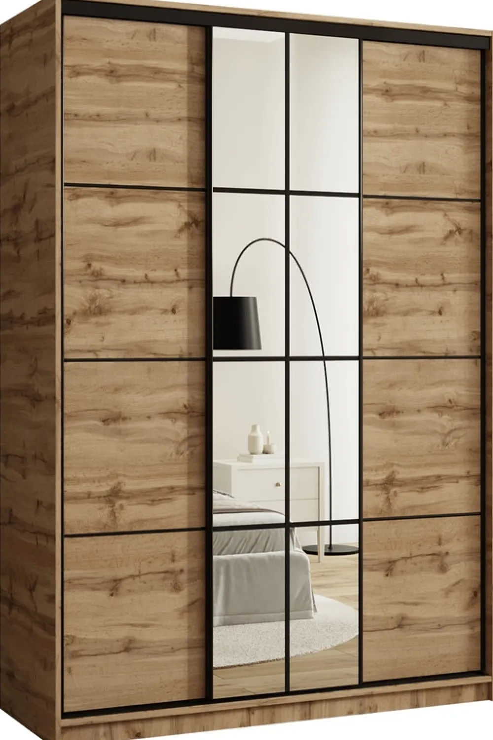 Poznaj wyjątkową szafę przesuwną z lustrem EDGE, która łączy w sobie nowoczesny design, praktyczne rozwiązania i wysoką jakość wykonania. Ten elegancki mebel to doskonałe uzupełnienie każdej sypialni, garderoby lub przedpokoju. Drzwi przesuwne poruszają się na wytrzymałym stalowym systemie w czarnym kolorze, który zapewnia płynność i trwałość użytkowania. Całość dopełniają czarne stalowe uchwyty, podkreślające nowoczesny charakter mebla.