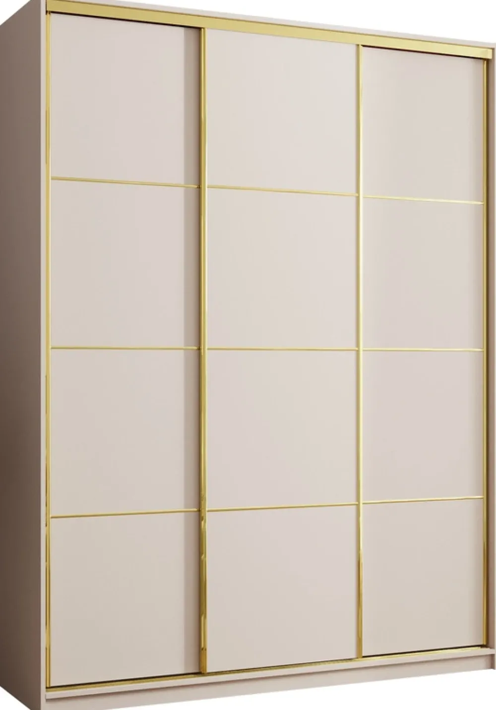 Wykończenie w kolorze złota to propozycja dla tych, którzy szukają nowoczesnego designu z nutą elegancji. Połączenie funkcjonalności i estetyki sprawia, że szafa idealnie wpisuje się zarówno w styl glamour, jak i minimalistyczne aranżacje.