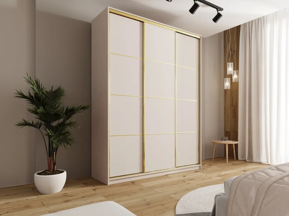 Szafa przesuwna 180×235 cm ze złotym wykończeniem – maksymalna pojemność i elegancja