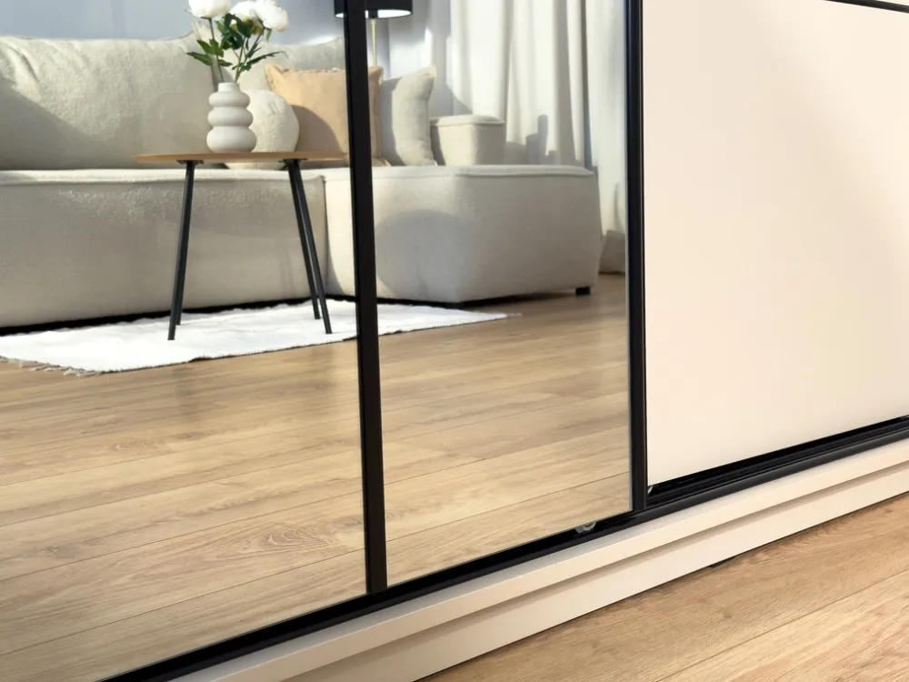 - Samodomykacze do drzwi – Możliwość doposażenia w dedykowane spowalniacze do drzwi przesuwnych, które działają na zasadzie cichego domyku. Pozwalają one na uniknięcie trzasków, niedomkniętych drzwi oraz uderzania drzwiami o korpus szafy – Zdecydowanie polecamy!