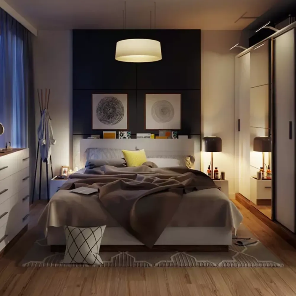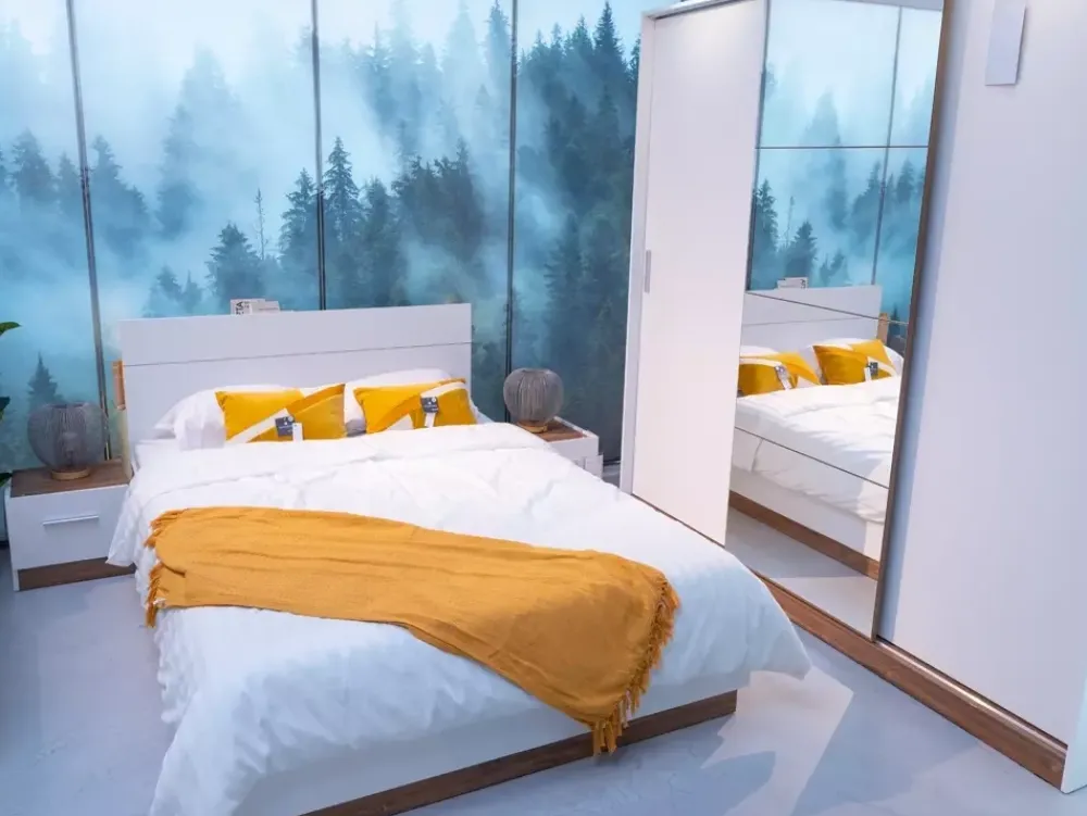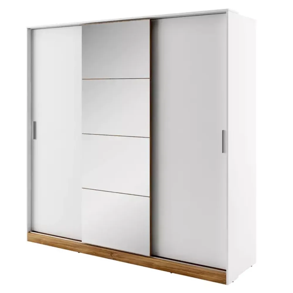 Szafa przesuwna z lustrem DENTRO została wykonana w nowoczesnej stylistyce, na którą składa się stonowana kolorystyka oraz lustro w modernistycznym kształcie, które optycznie powiększy oraz rozjaśni pomieszczenie.