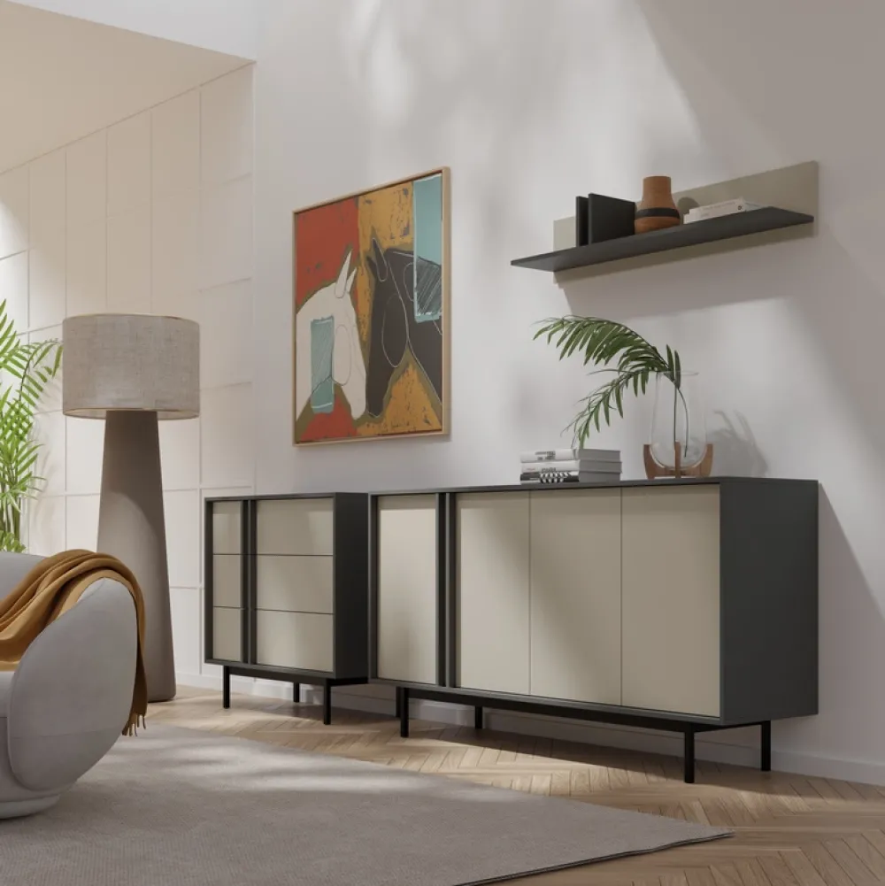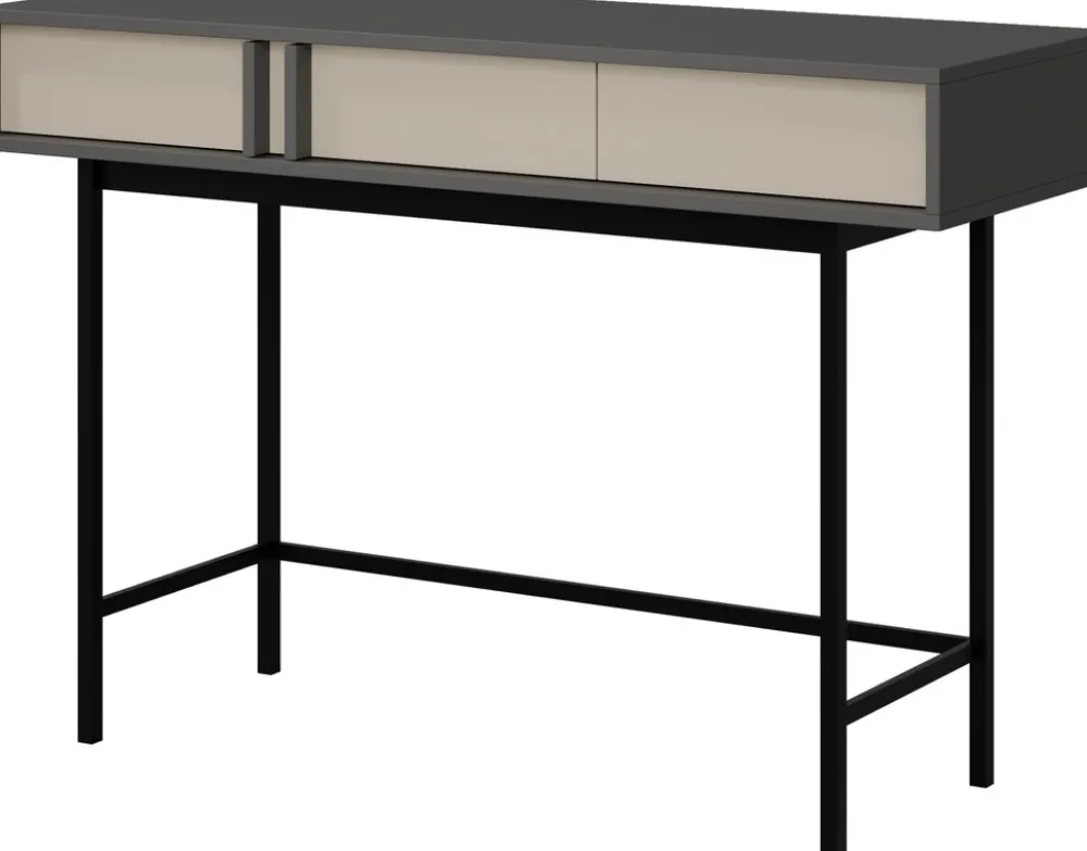- Toaletka AVERO w kolorze antracyt/beż jasny to elegancki mebel do sypialni, salonu lub garderoby. Wyposażona w praktyczne szuflady, zapewnia miejsce na kosmetyki i akcesoria, łącząc funkcjonalność z nowoczesnym designem.
