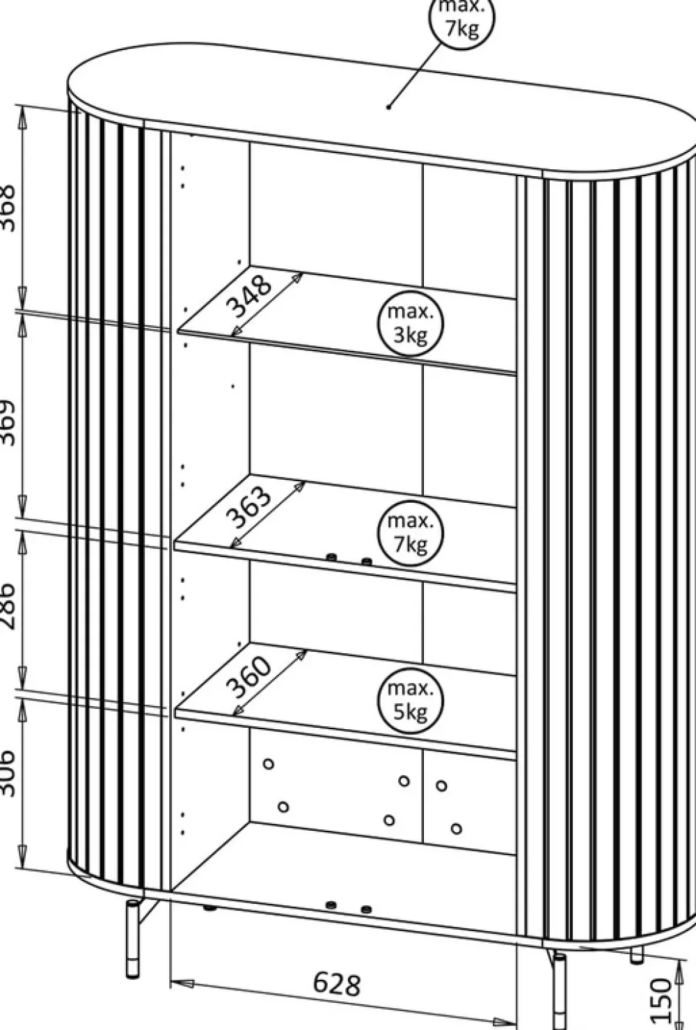- Zaokrąglone boczki witryny wykonano z frezowanej płyty MDF.