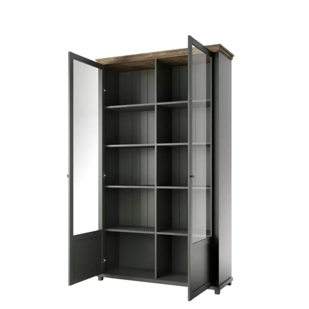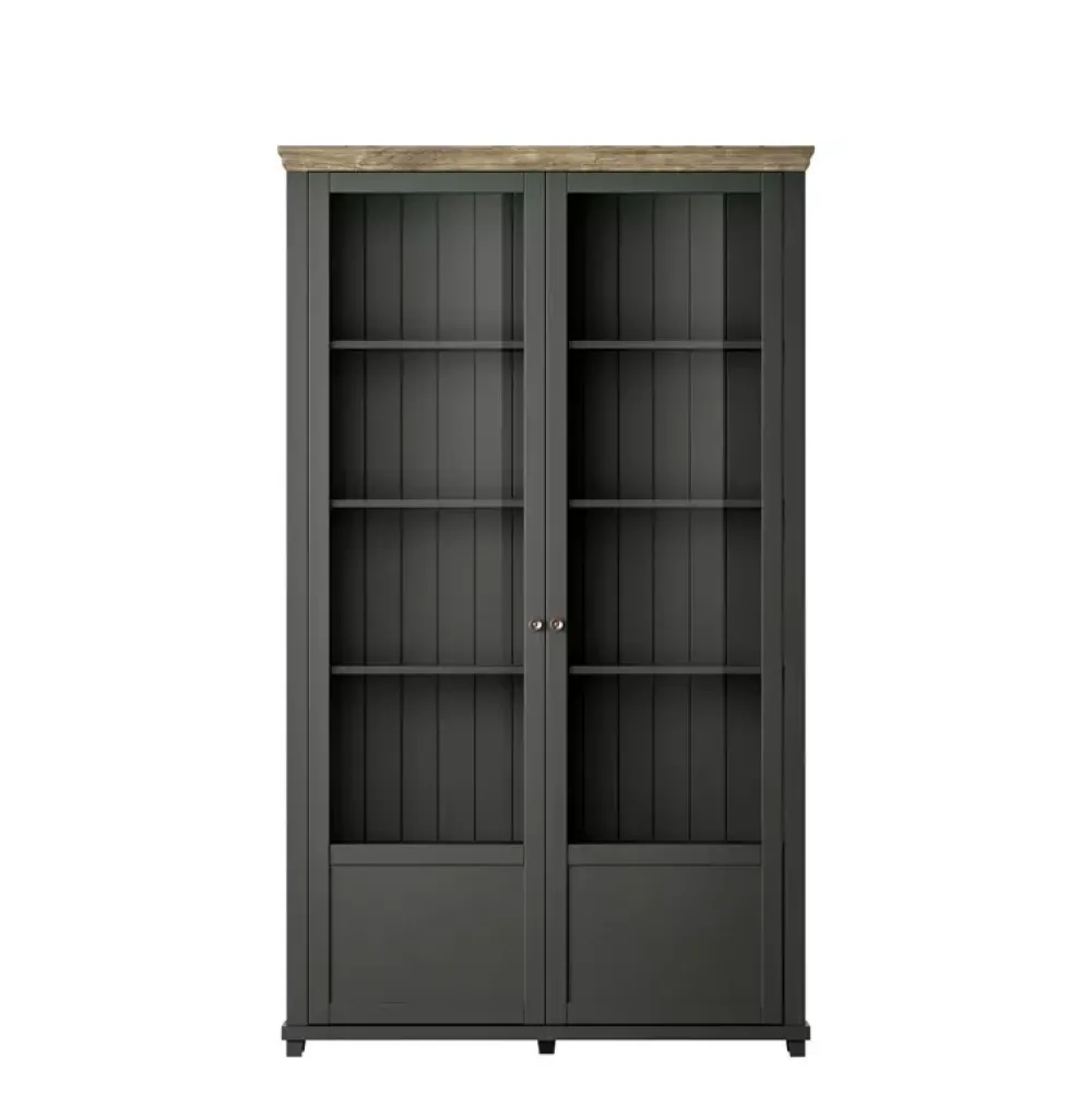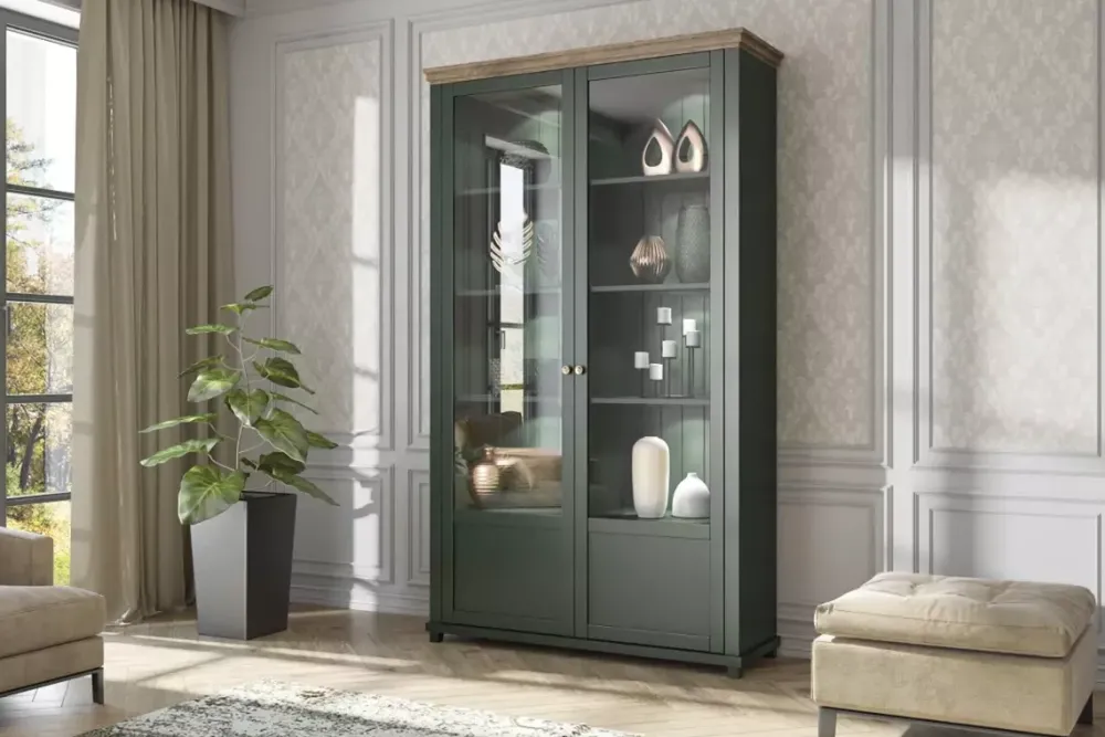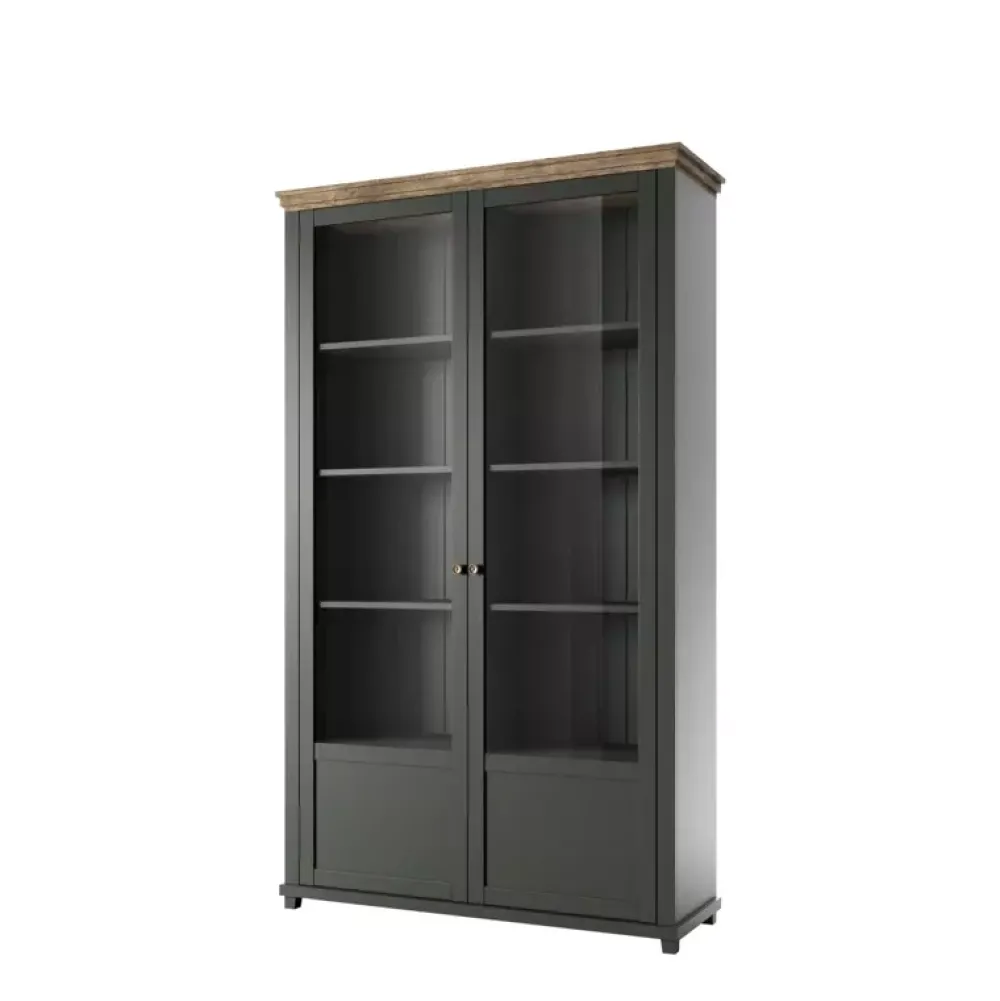 Klasyczna witryna dwudrzwiowa idealna do jadalni czy salonu, posiada wiele półek, na których można wyeksponować swoje kolekcje, trofea czy zastawę.