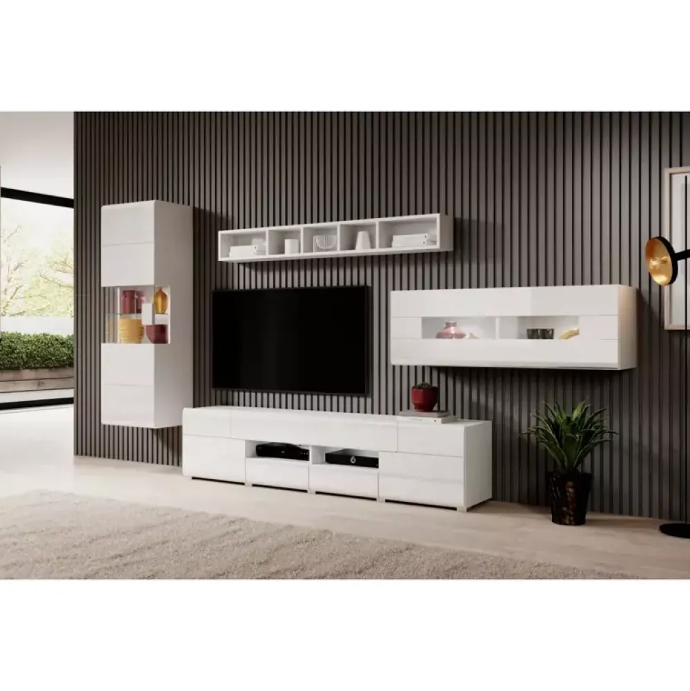 TENDER to seria stylowych mebli do salonu wyróżniająca się nowoczesnymi zaoblonymi kształtami, subtelnymi wstawkami w kolorach drewnopodobnych oraz szeroką gamą dostępnych brył. Dostępne komody, witryny, regały, półki oraz szafki rtv pozwolą na zaaranżowanie przestrzeni salonu w funkcjonalny i praktyczny sposób. Meble zostały wykonane z wysokiej jakości materiałów przy wykorzystaniu precyzyjnych technologii co sprawia, że będą one trwałe i wygodne w użytkowaniu. TENDER to doskonała propozycja dla osób poszukujących nowoczesnego designu idącego w parze z wysokiej jakości wykonaniem.