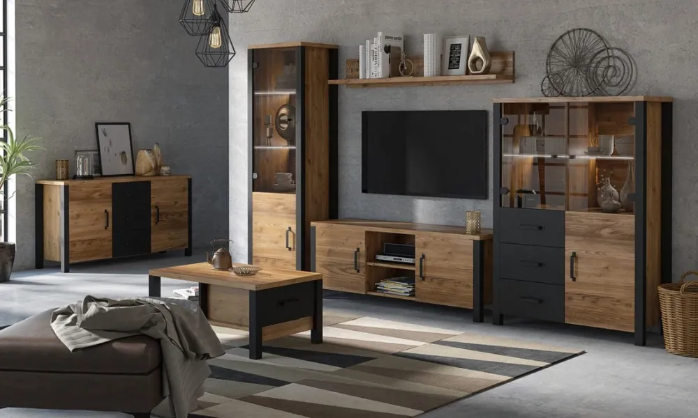 Meble ONLY to propozycja dla zwolenników stylu industrialnego. Rustykalne fronty w kolorach świerku i czarnego matu doskonale wpasują się we współczesne wnętrza gdzie dominują loftowe czy industrialne trendy. Kolekcja ONLY to komody, szafki RTV i witryny ze szklanymi frontami, które pozwolą skomponować funkcjonalny salon. Meble wykonano z dbałością wykorzystując najbardziej precyzyjne technologie. Jeżeli szukasz czegoś do industrialnego wystroju, meble ONLY to propozycja dla Ciebie.