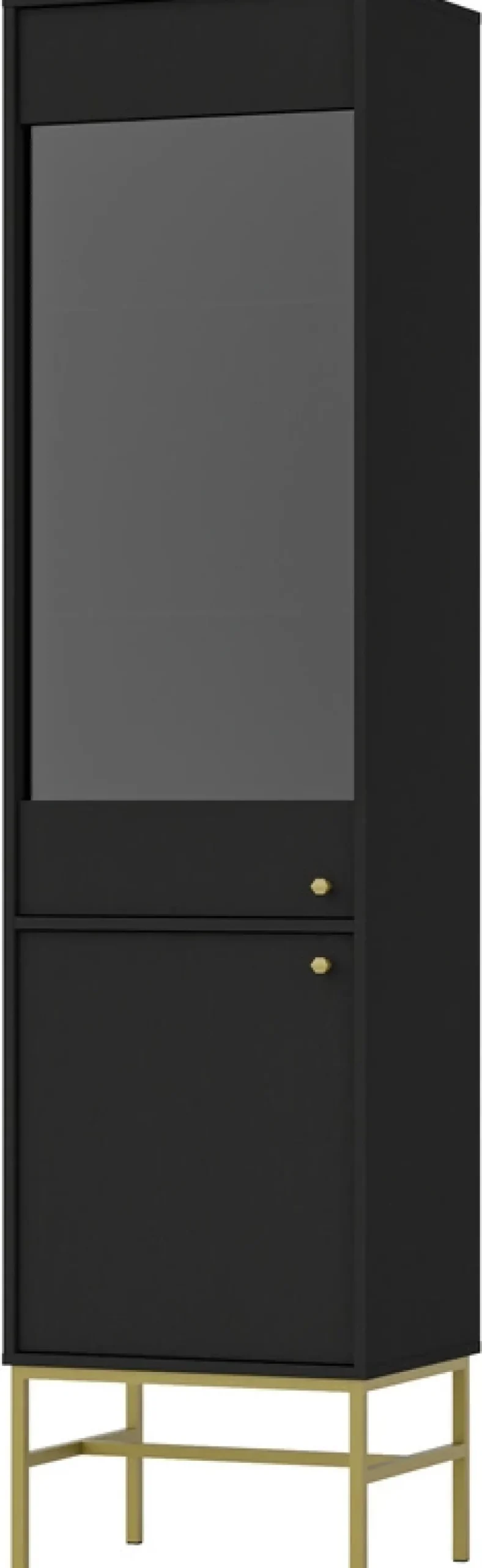 Górne przeszklone drzwi stanowią centralny punkt witryny, umożliwiając wyeksponowanie najcenniejszych dekoracji. Za nimi znajdują się dwie przestronne półki, które oferują mnóstwo miejsca na książki, ozdoby czy inne ważne dla Ciebie przedmioty.