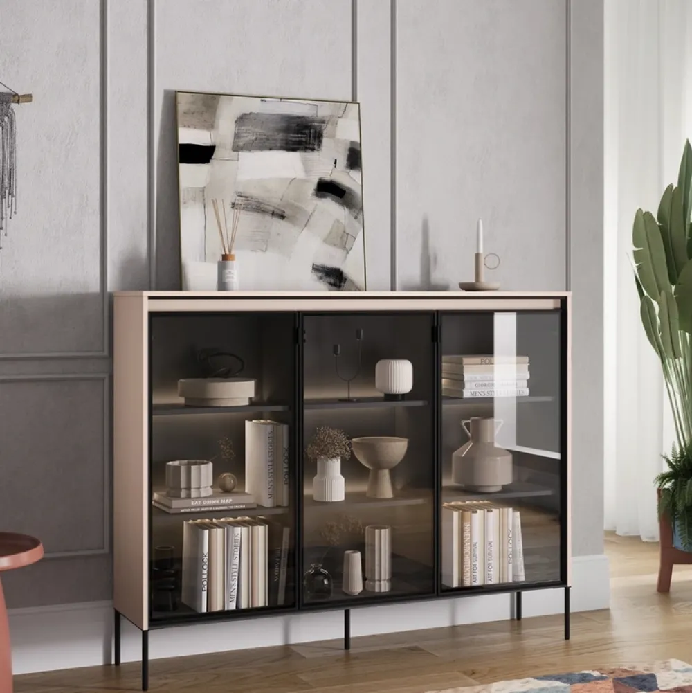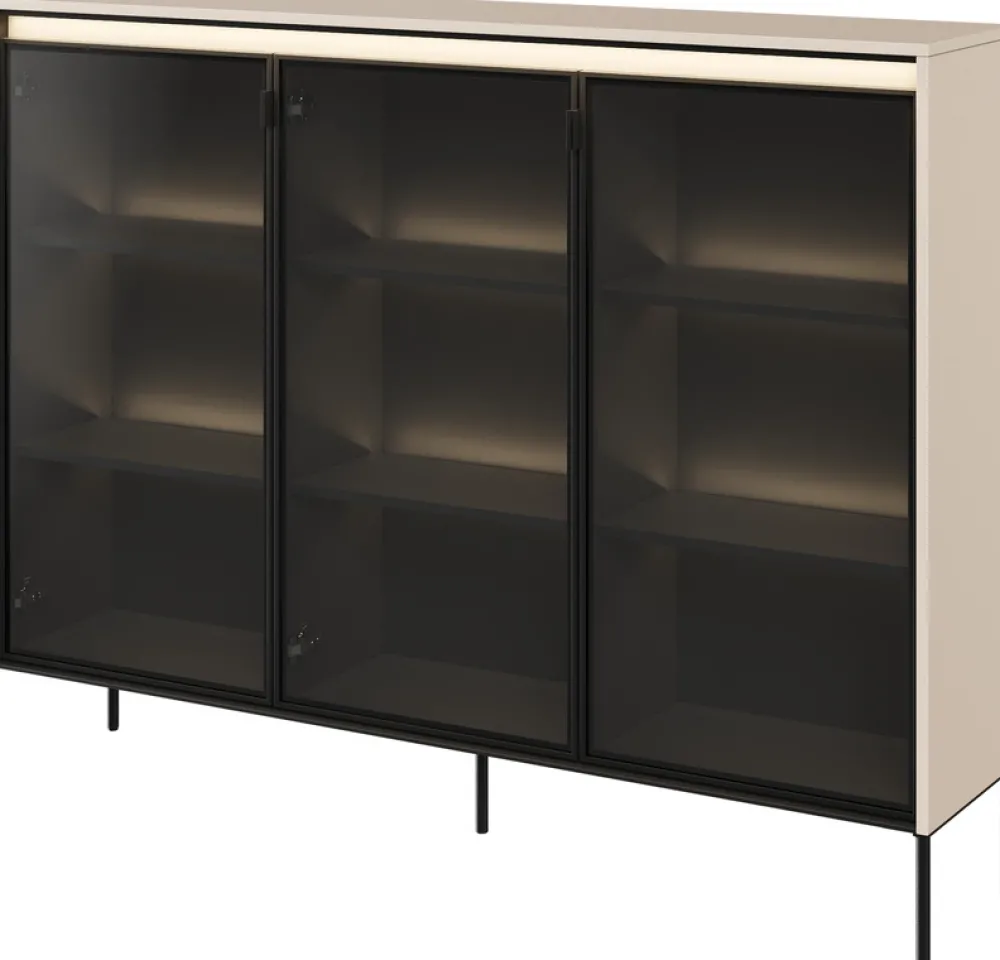 Barwa witryny to subtelny, ciepły beż piaskowy – kolor, który wprowadza do wnętrza klimat spokoju i harmonii, a także doskonale komponuje się z różnymi stylami aranżacyjnymi.