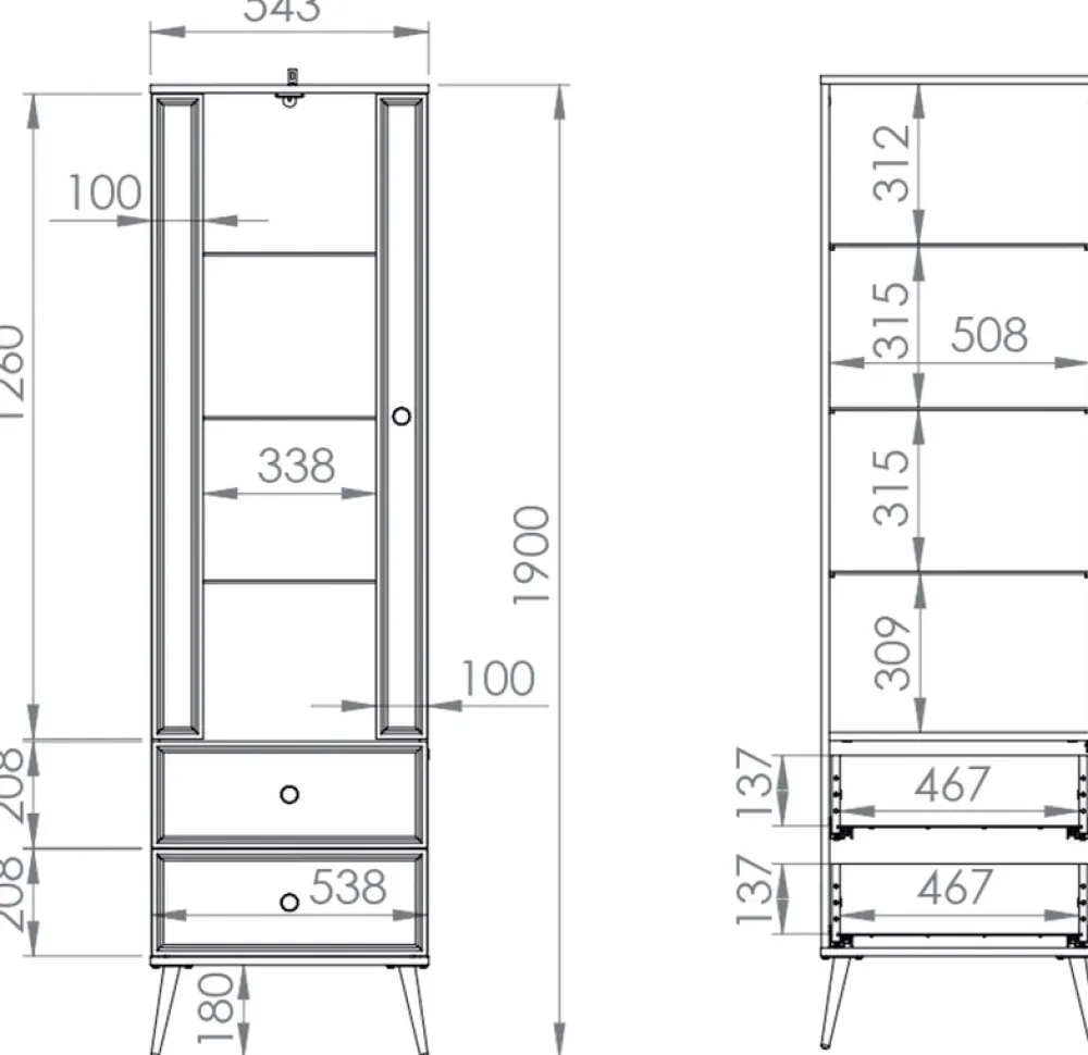 - W zestawie z witryną dołączone jest oświetlenie. Dzięki dotykowemu włącznikowi ze ściemniaczem możesz dostosować natężenie światła do swoich potrzeb.