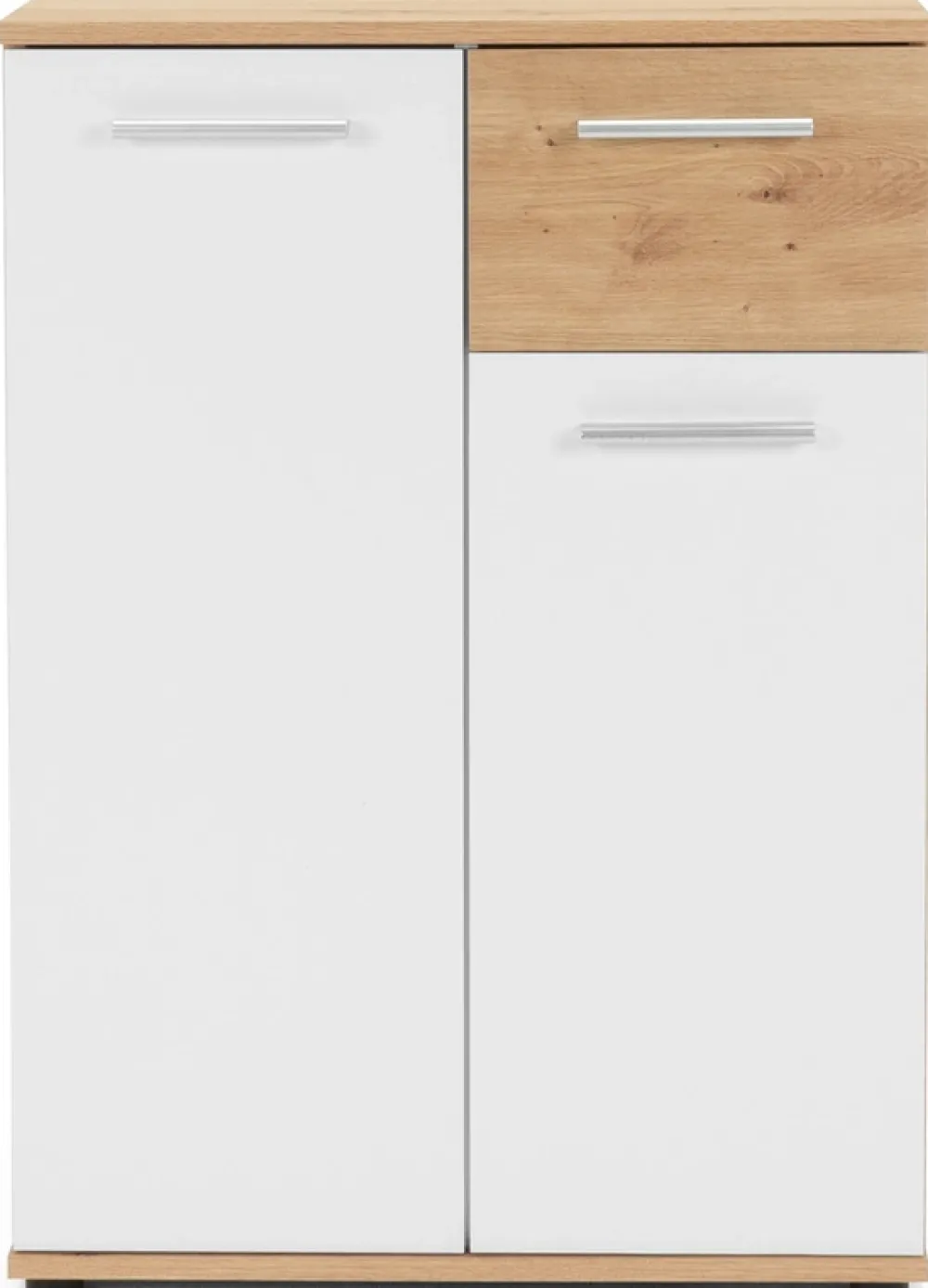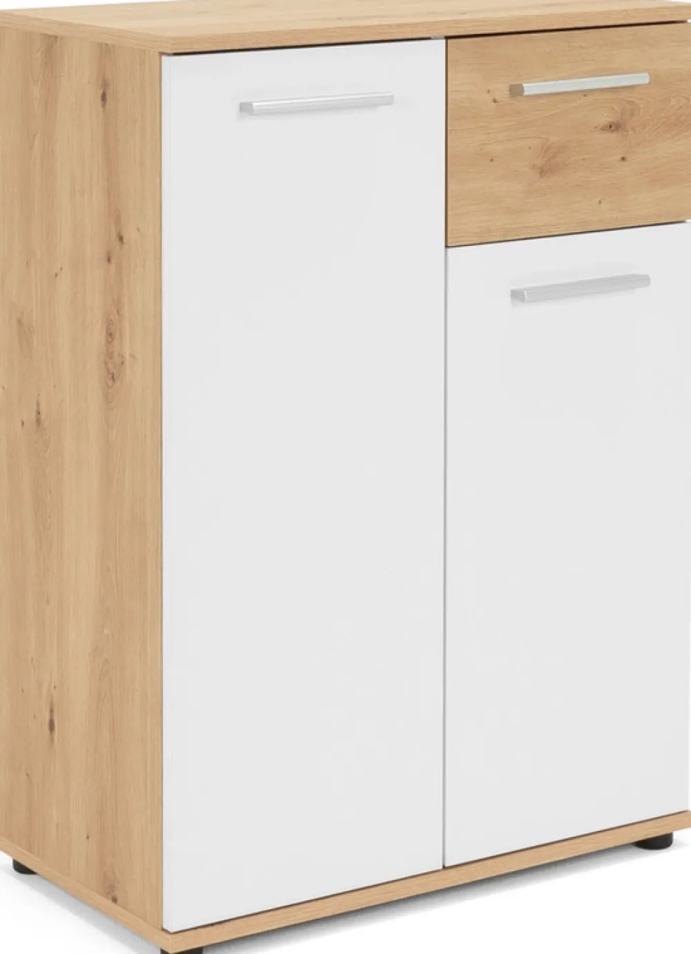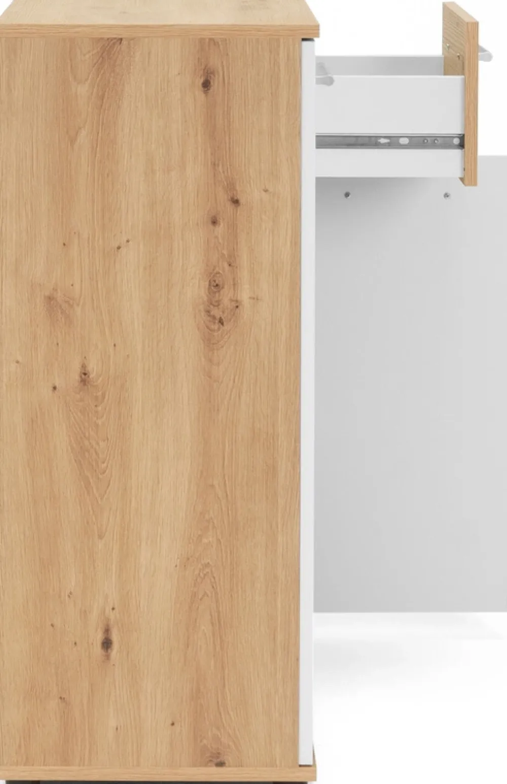 Szuflada na drobiazgi pozwala na wygodne przechowywanie małych przedmiotów, takich jak klucze, dokumenty czy akcesoria, dbając o porządek w Twoim domu. Dwie zamykane szafki z półkami oferują przestronne miejsce do przechowywania większych rzeczy, takich jak tekstylia, książki czy zastawa stołowa. To doskonałe rozwiązanie do salonu, sypialni, a nawet przedpokoju.