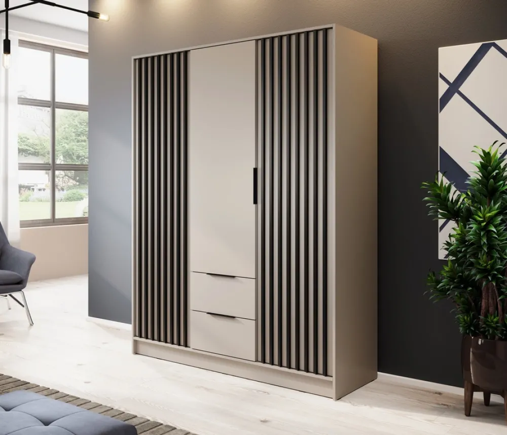 Szafa uchylna 155 cm z lamelami i szufladami – elegancja i perfekcyjna organizacja przestrzeni