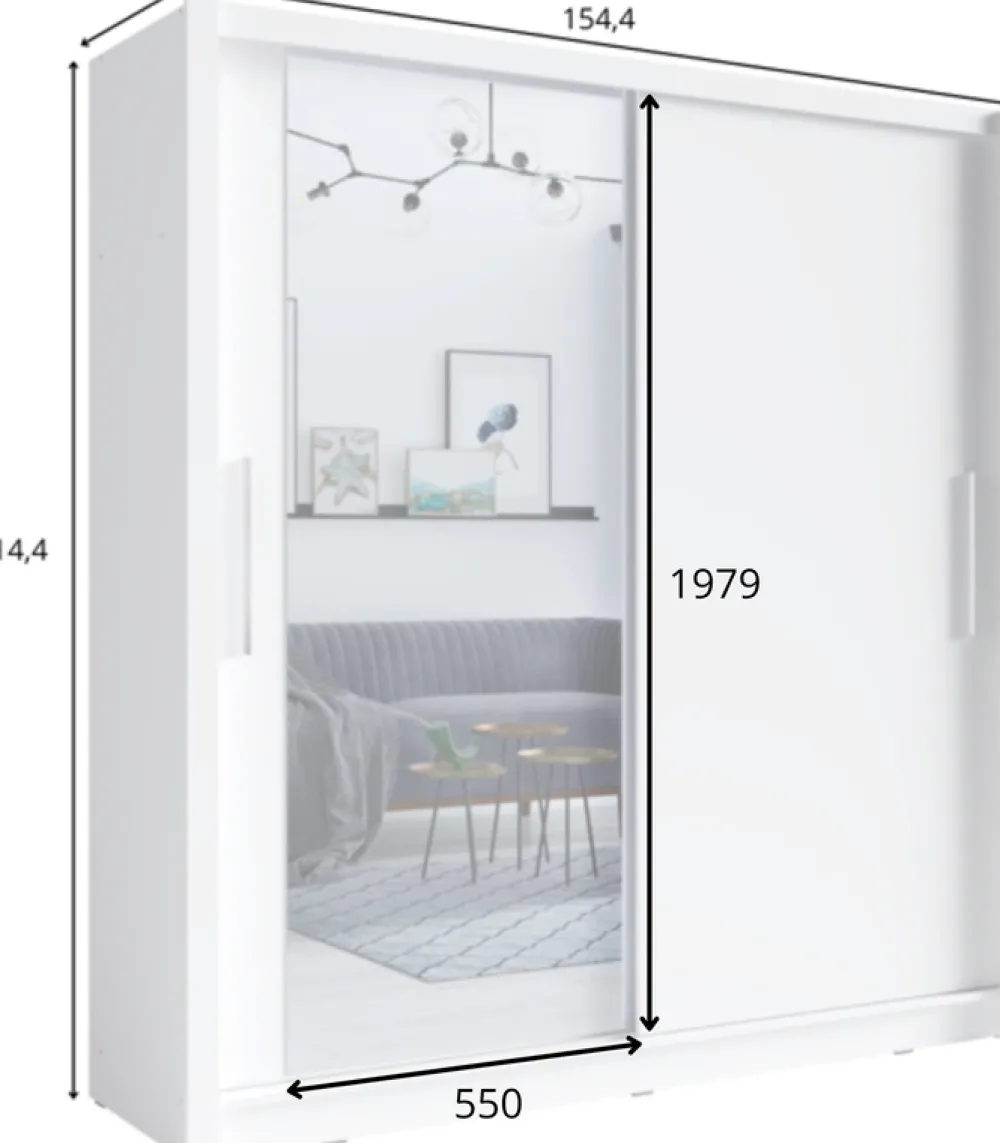 - Wymiary: szerokość 154,4 cm, wysokość 214,4 cm, głębokość 62 cm