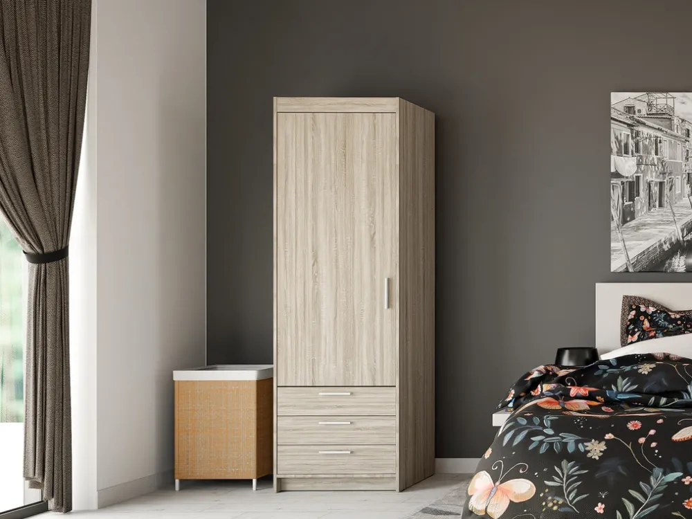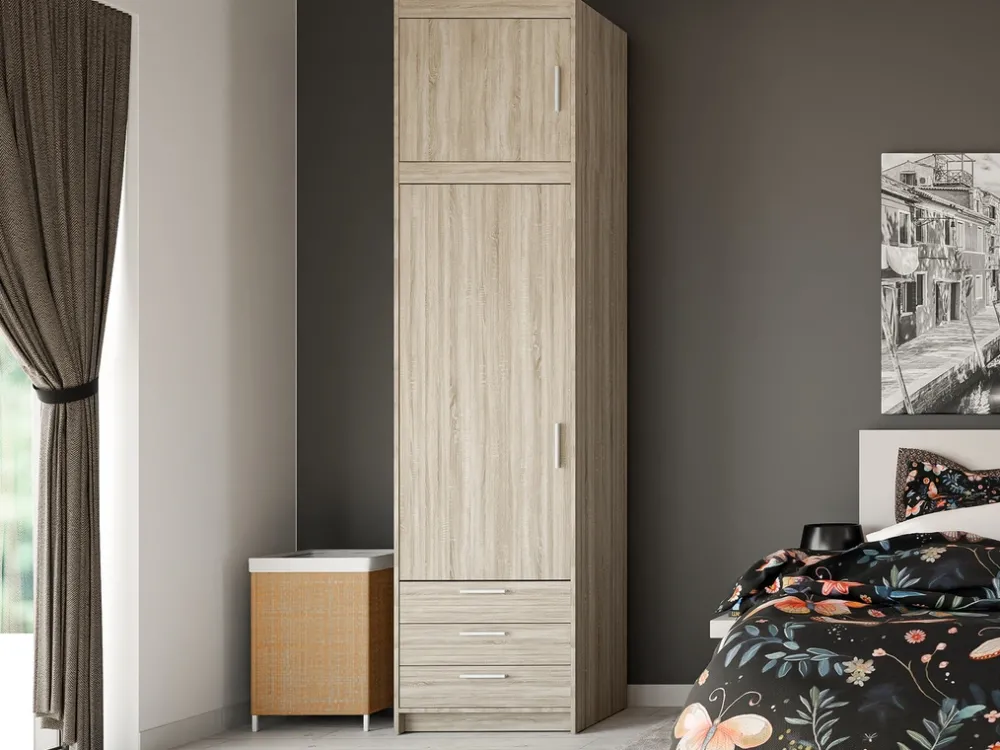Zaprezentuj swojej przestrzeni elegancką i funkcjonalną szafę KUBA, która świetnie wpasuje się w każde wnętrze. Jednodrzwiowa szafa o szerokości 60 cm jest idealna dla osób ceniących sobie zarówno styl, jak i praktyczność. Wykonana z wysokiej jakości 15 mm płyty laminowanej, zapewnia trwałość i łatwość w utrzymaniu czystości, a dodatkowo jej krawędzie są zabezpieczone melaminą, co gwarantuje dodatkową ochronę przed codziennym użytkowaniem.