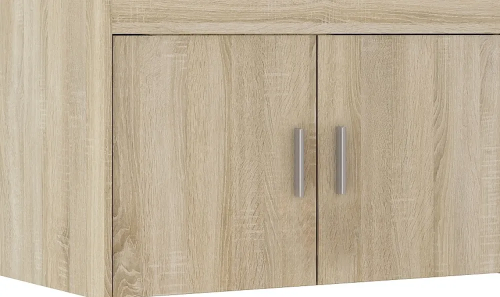Kompletny zestaw mebli KUBA to idealna propozycja dla tych, którzy szukają kompaktowego, ale pojemnego rozwiązania do przechowywania. Dwudrzwiowa szafa z trzema szufladami oraz dopasowana nadstawka tworzą spójną całość, która nie tylko pomieści wszystkie niezbędne rzeczy, ale też doda wnętrzu elegancji. Ciepły dekor dąb sonoma doskonale komponuje się z nowoczesnymi i klasycznymi aranżacjami, wprowadzając do pomieszczenia naturalne ciepło.