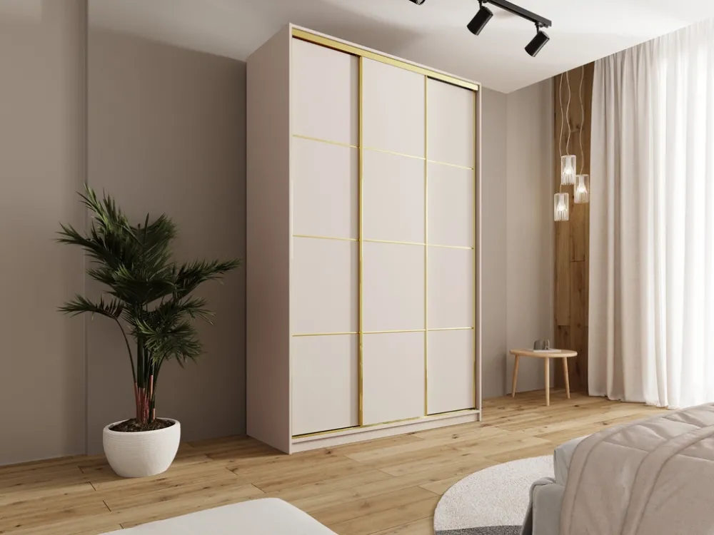 Szafa przesuwna 150×235 cm ze złotym wykończeniem – maksymalna pojemność i elegancja