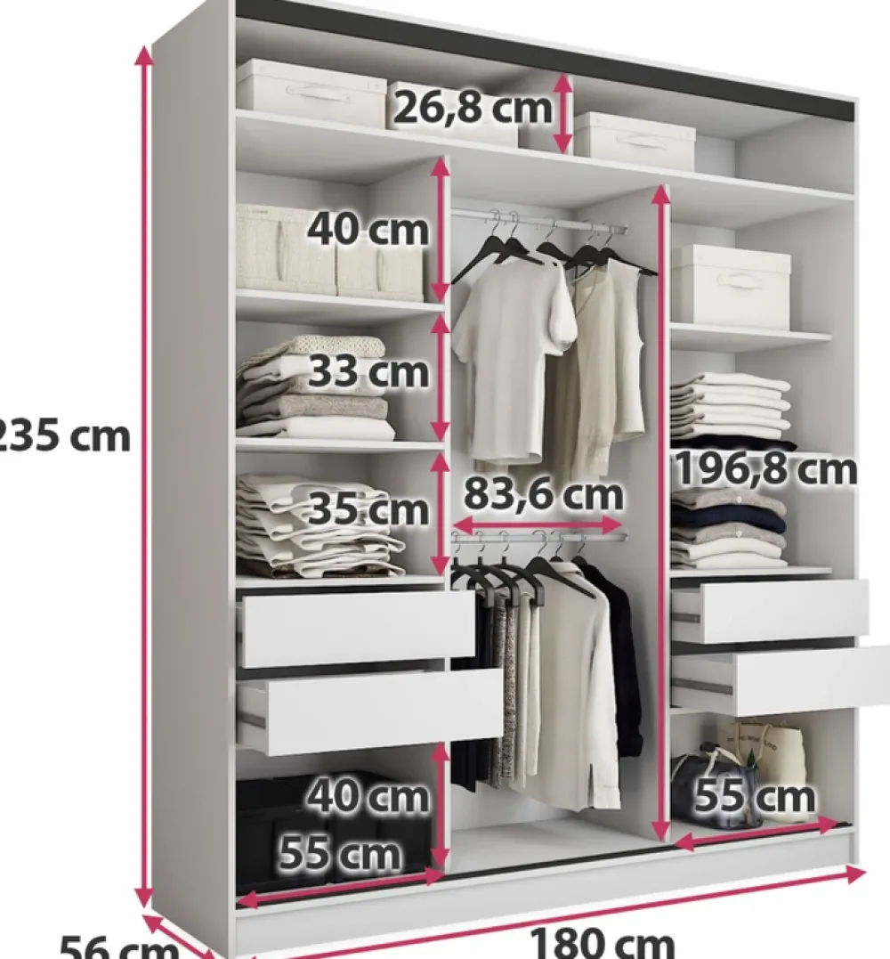 Nasza szafa przesuwna 180 cm to doskonałe połączenie stylu i funkcjonalności. Wybierz mebel, który pomoże Ci zorganizować przestrzeń i dodać elegancji Twojemu wnętrzu. Zainwestuj w jakość, która sprawi, że każdy dzień będzie prostszy i bardziej komfortowy. Spraw, aby Twoje wnętrze było nie tylko piękne, ale i praktyczne dzięki naszej wyjątkowej szafie.