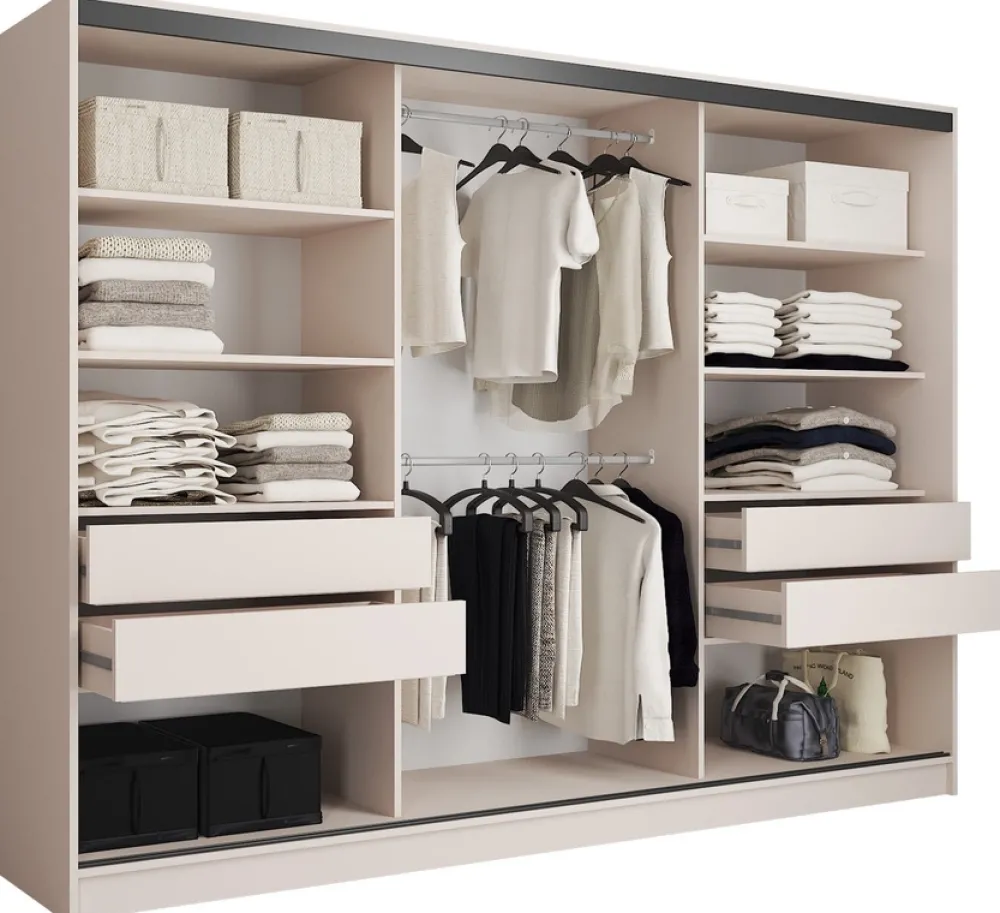 - Szafa wyposażona w troje drzwi przesuwnych.