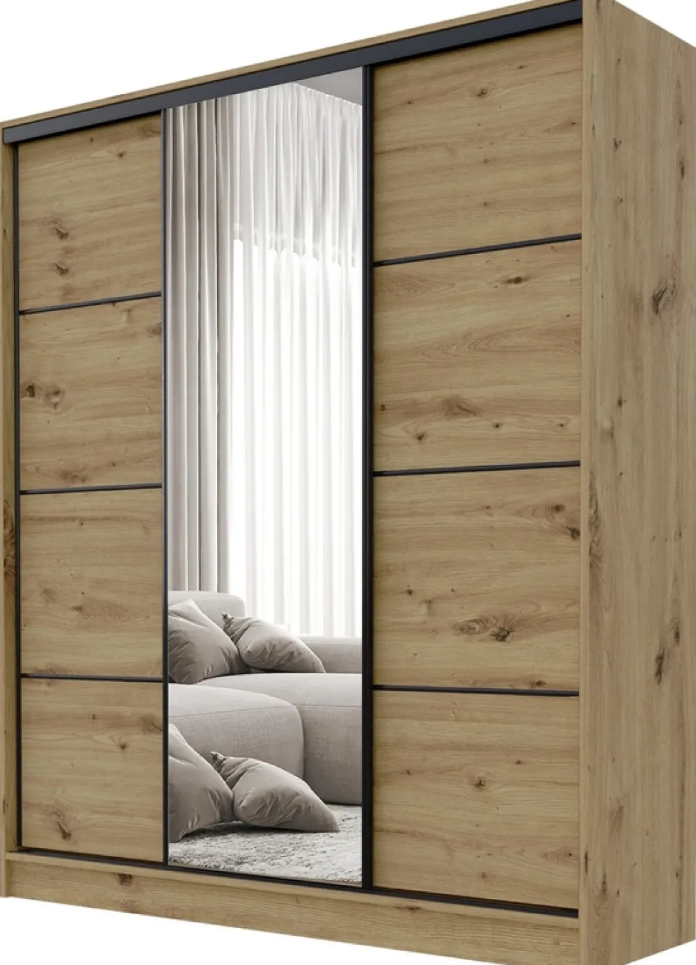 Nowoczesna szafa przesuwna z lustrem jest idealnym rozwiązaniem dla tych, którzy cenią sobie połączenie funkcjonalności i estetyki. Wyposażona w duże, pełnowymiarowe lustro umieszczone na centralnych drzwiach, nie tylko dodaje przestrzeni i światła do każdego pokoju, ale także umożliwia wygodne przejrzenie wyglądu przed wyjściem z domu.