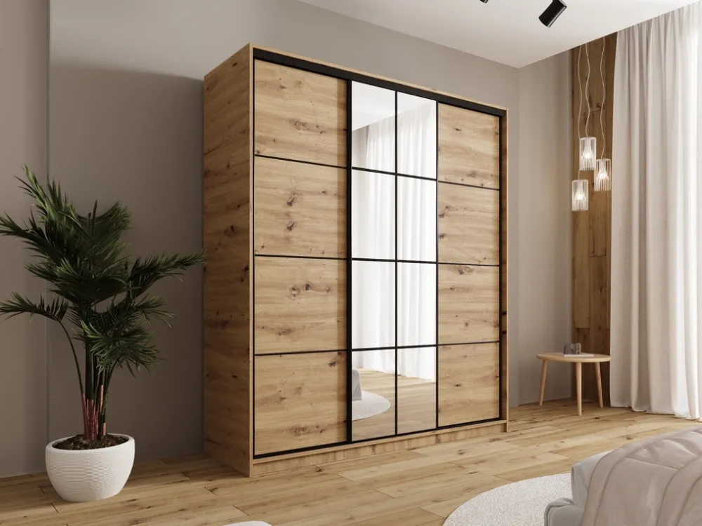 Ta szafa przesuwna z lustrem to nie tylko funkcjonalny element wyposażenia, ale również stylowa dekoracja wnętrza. Duże lustro na froncie nie tylko ułatwia codzienne przygotowania, ale także optycznie powiększa przestrzeń, nadając pomieszczeniu lekkości i nowoczesności. Wybierz szafę 180 cm i ciesz się idealnym połączeniem praktyczności i stylu!